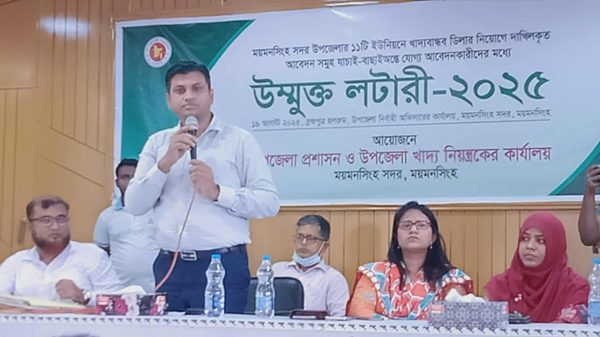 মঙ্গলবার (১৯ আগস্ট) বেলা ১১টায় উপজেলা প্রশাসন ও উপজেলা খাদ্য নিয়ন্ত্রক কার্যালয়ের যৌথ উদ্যোগে উপজেলা পরিষদের ব্রহ্মপুত্র হলরুমে এ উম্মুক্ত লটারি কার্যক্রমের আয়োজন করা হলে উদ্বোধনী দিনে ৩ টি ইউনিয়নের লটারী কার্যক্রম সম্পন্ন করা হয়। সময় স্বল্পতার কারণে একদিনে সকল ইউনিয়নের লটারী কার্যক্রম সম্পন্ন করতে না পারায়