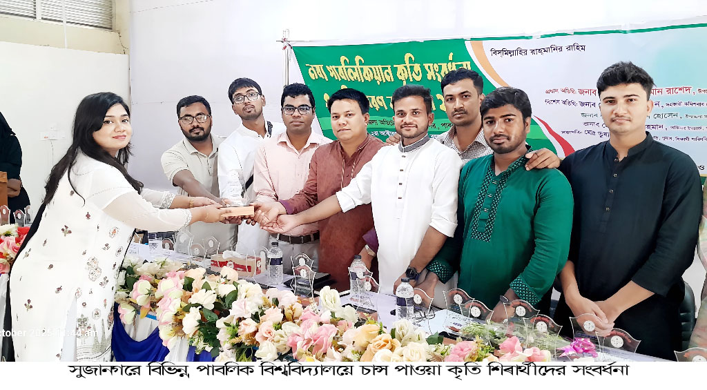 এম এ আলিম রিপন,সুজানগরঃ দেশের বিভিন্ন সরকারি বিশ্ববিদ্যালয়ে ২০২৪-২০২৫ শিক্ষাবর্ষে ভর্তির সুযোগ পাওয়া কৃতি শিক্ষার্থীদের সংবর্ধনা প্রদান করা হয়েছে। বৃহস্পতিবার পাবলিক ইউনিভার্সিটি স্টুডেন্ট অ্যাসোসিয়েশন অফ সুজানগরের আয়োজনে উপজেলা পরিষদ মিলনায়তনে সুজানগর উপজেলা থেকে দেশের বিভিন্ন সরকারি বিশ্ববিদ্যালয়ে ভর্তির সুযোগ পাওয়া এ সকল কৃতি শিক্ষার্থীদের সংবর্ধনা দেওয়া হয়। অনুষ্ঠানে প্রধান অতিথি ছিলেন উপজেলা নির্বাহী অফিসার মীর রাশেদুজ্জামান রাশেদ। পাবলিক ইউনিভার্সিটি স্টুডেন্ট অ্যাসোসিয়েশন অফ সুজানগরের সভাপতি তুষার মাহমুদ (পাবিপ্রবি) এর সভাপতিত্বে এবং সাধারণ সম্পাদক নাজমুল হক আশিক(রাবি) এর সঞ্চালনায় অনুষ্ঠিত সংবর্ধনা অনুষ্ঠানে বিশেষ অতিথির বক্তব্য দেন উপজেলা কৃষি অফিসার কৃষিবিদ আসাদুজ্জামান। কৃতি শিক্ষার্থীদের মধ্যে বক্তব্য রাখেন সংগঠনটির প্রচার ও মিডিয়া সম্পাদক দ্বীপ মাহবুব (জুলাই যোদ্ধা, শিক্ষার্থী (রাবি),কোষাধ্যক্ষ এস. এম. সায়েম(ঢাবি)সাংগঠনিক সম্পাদক ফাহাদ আজম খান (পাবিপ্রবি),নারী উন্নয়ন বিষয়ক সম্পাদক কাজী রাফিয়া (জবি), মাসুদ রানা ,হামিদুর রহমান(ঢাবি), মুশফিকা মোর্শেদ(মুগদা মেডিকেল),সোহান খান (জাবি) ও রাসেল হোসেন(ঢাবি) প্রমুখ। জীবনে কেবল ভাল রেজাল্ট করাই বড় কথা নয় উল্লেখ করে প্রধান অতিথির বক্তব্যে উপজেলা নির্বাহী অফিসর মীর রাশেদুজ্জামান রাশেদ বলেন, পড়ালেখার মূল উদ্দেশ্য প্রকৃত মানুষ হয়ে ওঠা। এ দেশকে গড়ে তোলার দায়িত্ব আমাদের। তিনি বলেন, উপজেলার প্রত্যন্ত অঞ্চলের একটি বিদ্যালয়ে পড়ালেখা করেও তোমরা যারা এ কৃতিত্ব অর্জন করেছ অবশ্যই তোমরা মেধাবী। তবে এটাই সব কিছু নয়। শিক্ষার প্রকৃত উদ্দেশ্য হলো মানুষকে ভালোবাসা। মানুষকে জানা। গরিব, অসহায় মানুষের পাশে থাকা। উচ্চ শিক্ষাসম্পন্ন করে তোমরা যে যেখানে থাকবে সেখান থেকেই মানুষের কল্যাণে কাজ করতে হবে। গরিব ও অসহায় মানুষের পাশে দঁাড়াতে হবে। ভালবাসতে হবে দেশ ও দেশের মানুষকে। তোমরা তোমাদের মেধাকে কাজে লাগিয়ে দেশ ও মানুষের কল্যাণে অবদান রাখবে। দেশ যদি উন্নত হয়, সমৃদ্ধ হয় তাহলে তোমাদের সাফল্য, মা-বাবার কষ্ট সফল হবে। তোমরা ভালো রেজাল্ট করে মা-বাবার মুখ যেমন উজ্জ্বল করেছ, তেমনি দেশের ভাবমূর্তি উজ্জ্বল করার ক্ষেত্রেও তোমাদের সচেষ্ট থাকতে হবে। শেষে কৃতি শিক্ষার্থীদের হাতে ক্রেস্ট তুলে দেওয়া হয়।