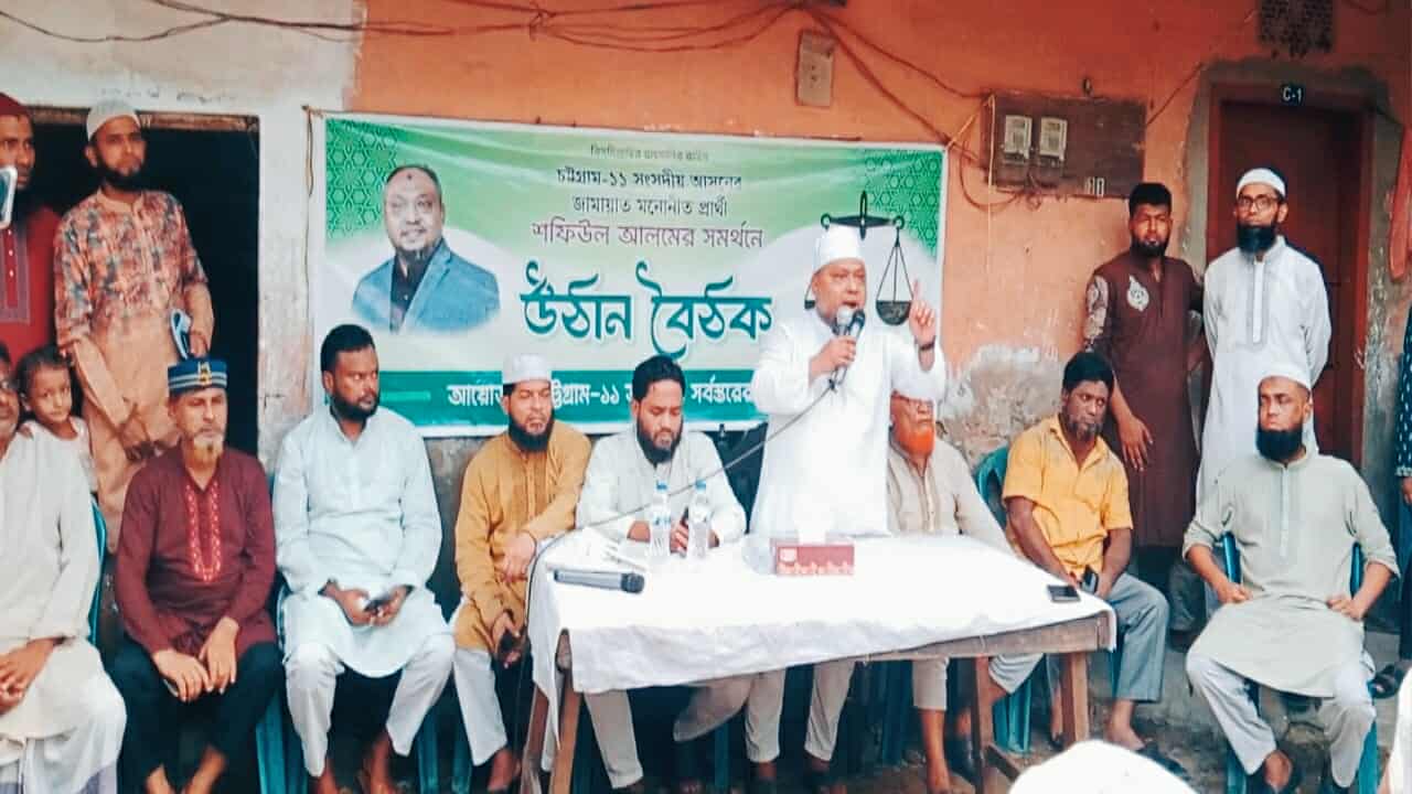 চট্টগ্রাম মহানগর মজলিসের শূরা সদস্য ও ইপিজেড থানা আমীর জনাব আবুল মোকাররম বলেন—“ভোটাধিকার হরণ করে গড়ে তোলা রাষ্ট্র জনগণের কল্যাণ করতে পারে না। জনগণের অধিকার প্রতিষ্ঠা ও ন্যায়ভিত্তিক রাষ্ট্র গঠনের লক্ষ্যে আগামী নির্বাচনে দাঁড়িপাল্লায় ভোট দিয়ে শফিউল আলমকে বিজয়ী করতে হবে।”