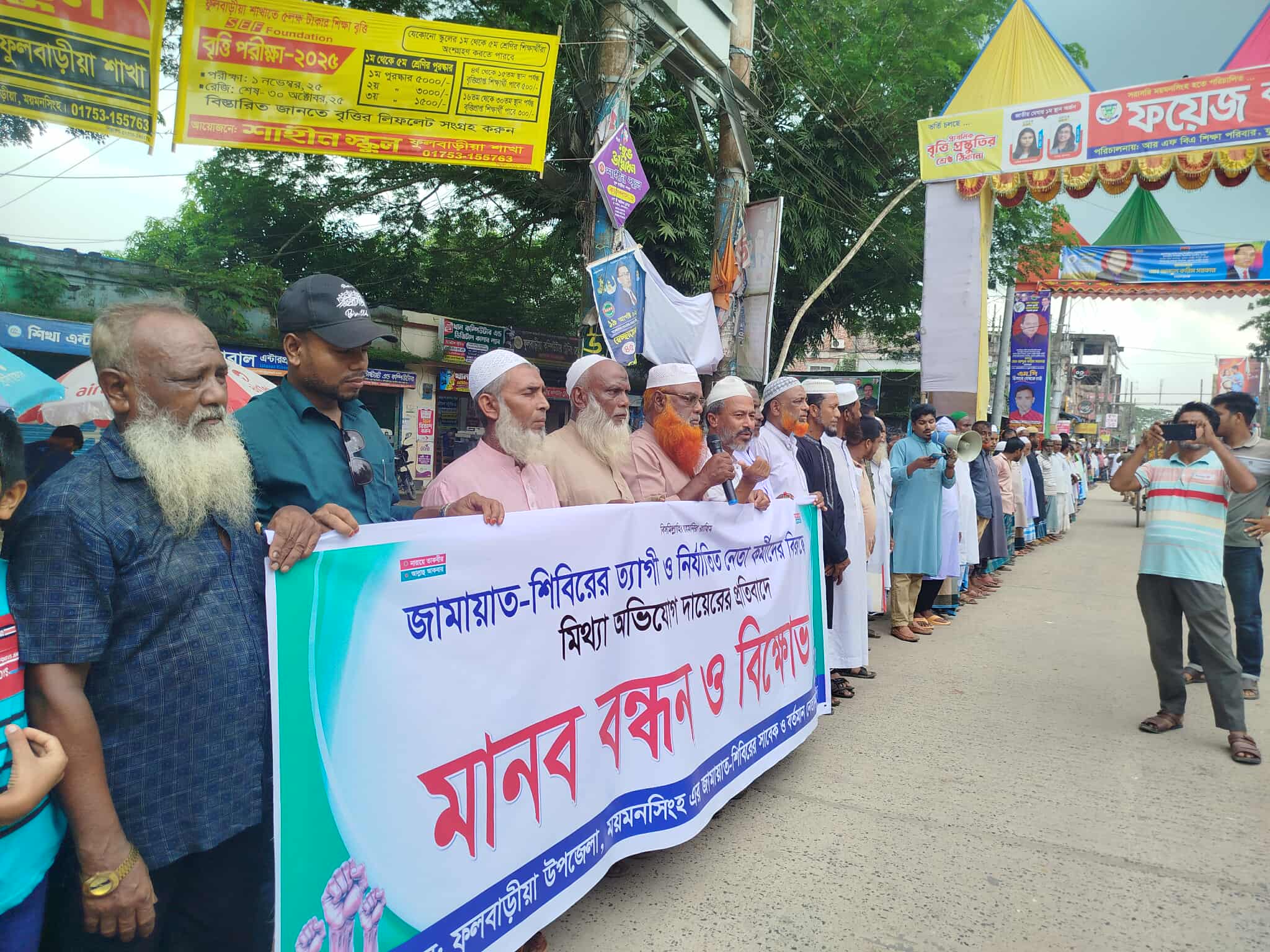 শনিবার (৪ অক্টোবর) দুপুরে ফুলবাড়ীয়া উপজেলা পরিষদের সামনে ময়মনসিংহ-ফুলবাড়ীয়া সড়কে বিক্ষুব্ধ জামায়াত-শিবিরের শতশত নেতাকর্মী অভিযোগ প্রত্যাহারের দাবিতে বিক্ষোভ মিছিল ও মানববন্ধন কর্মসূচি পালন করেন।