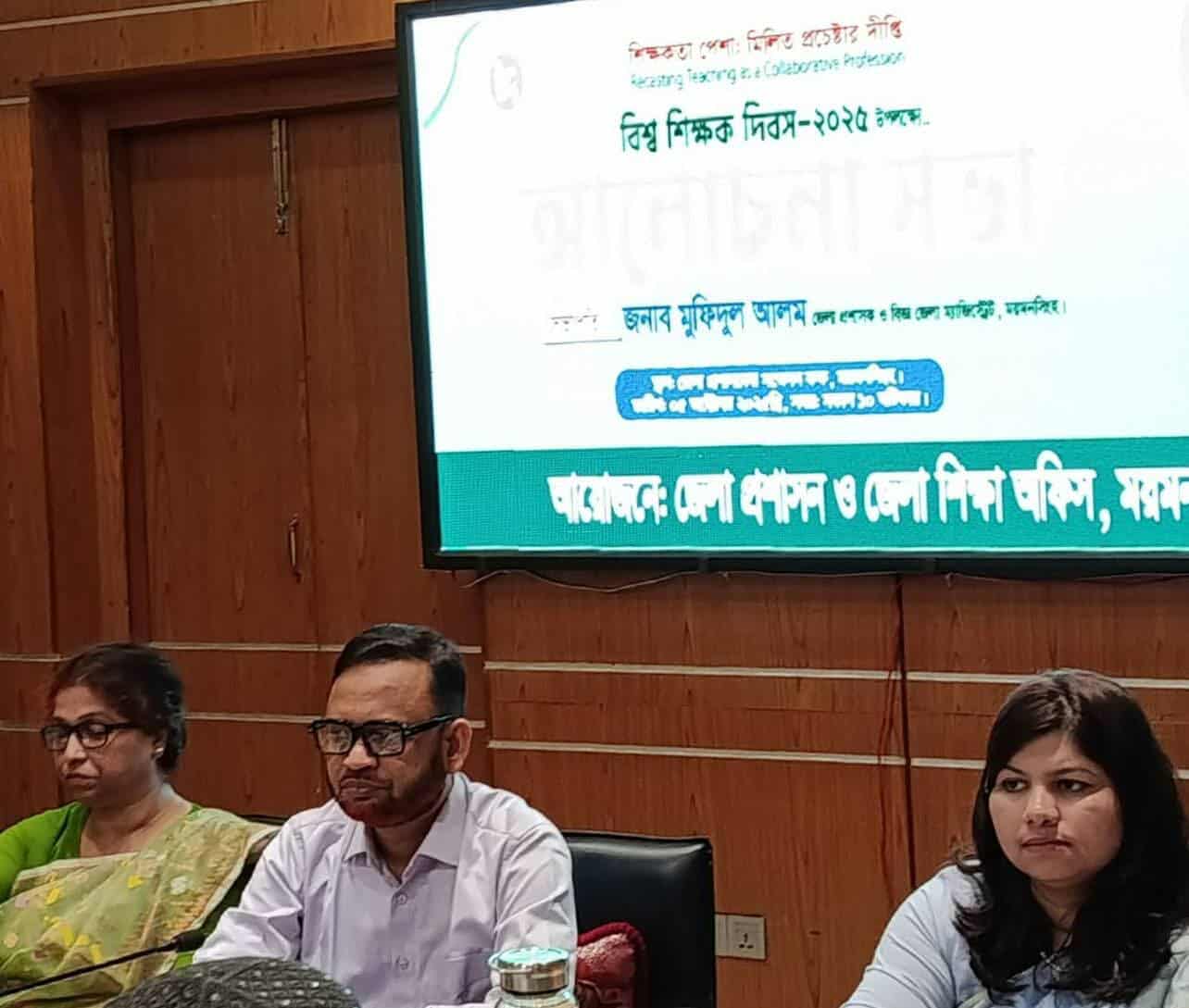 রবিবার (৫অক্টোবর) সকালে শিক্ষকতা পেশা, মিলিত সেবার দীপ্তি” এই শ্লোগানকে ধারণ করে বিশ্ব শিক্ষক দিবস ২০২৫ উপলক্ষে ময়মনসিংহ জেলা প্রশাসন সম্মেলন কক্ষে জেলা প্রশাসন ও জেলা শিক্ষা অফিসের যৌথ আয়োজিত এক আলোচনা সভায় সভাপতির বক্তব্যে এসব কথা বলেন।