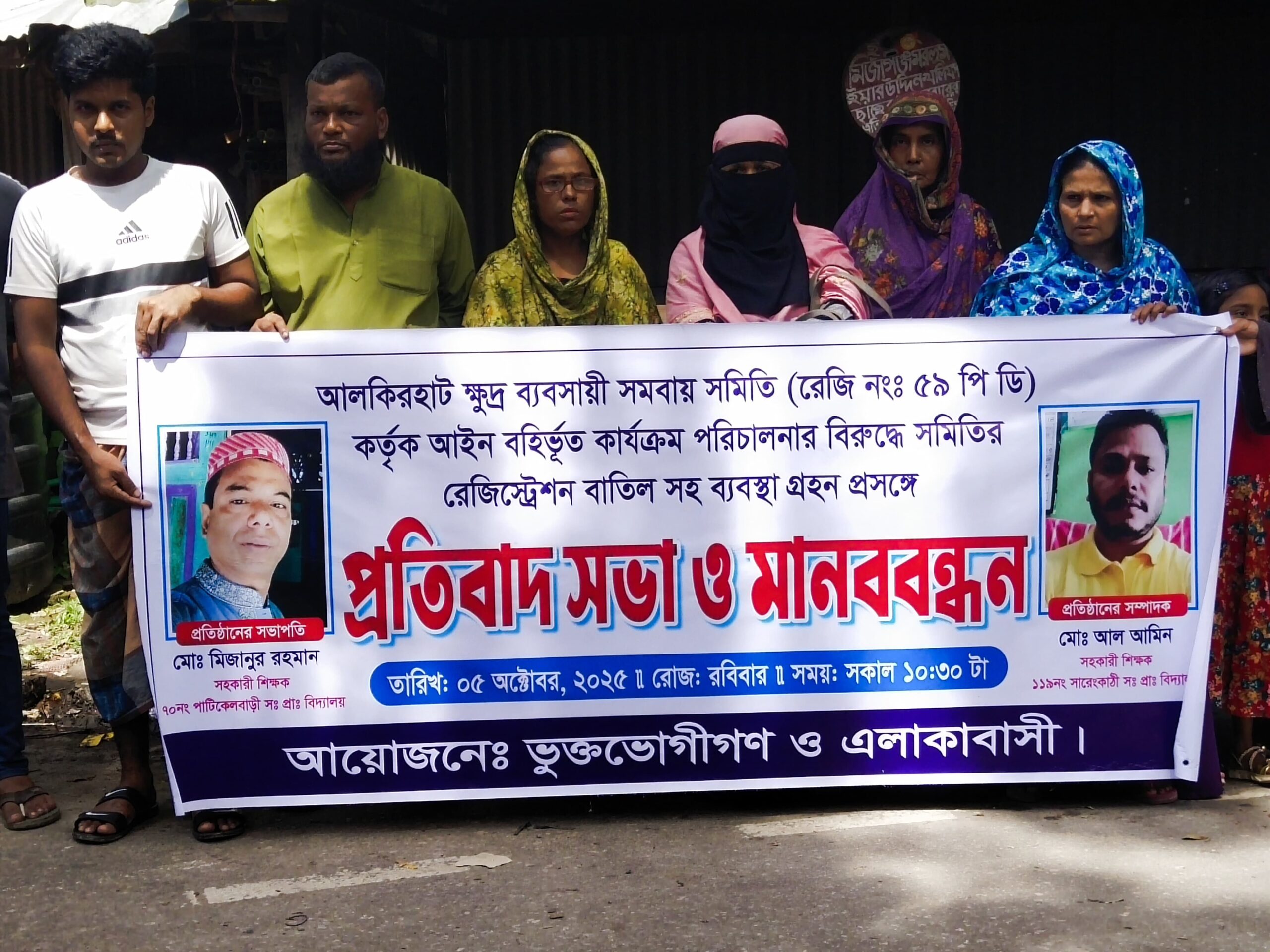 বক্তারা বলেন, দুই শিক্ষক তাদের প্রভাব খাটিয়ে সাধারণ মানুষের কাছ থেকে অর্থ হাতিয়ে নিচ্ছেন। এতে এলাকার বহু দরিদ্র মানুষ নিঃস্ব হয়ে পড়েছেন। তারা সমবায় অধিদপ্তরসহ সংশ্লিষ্ট কর্তৃপক্ষের জরুরি তদন্ত ও অভিযুক্তদের বিরুদ্ধে আইনগত ব্যবস্থা গ্রহণের দাবি জানান।
