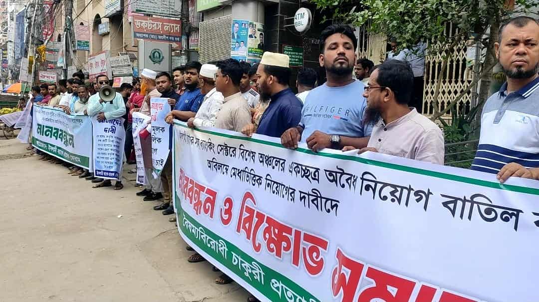 ইসলামী ব্যাংকসহ ব্যাংকিং সেক্টরে বিশেষ অঞ্চলের একচ্ছত্র অবৈধ নিয়োগ বাতিল, মেধাভিত্তিক নিয়োগ প্রদান এবং বিদেশে পাচারকৃত অর্থ ফেরতের দাবিতে কুমিল্লায় মানববন্ধন করেছে গ্রাহকরা হয়েছে।