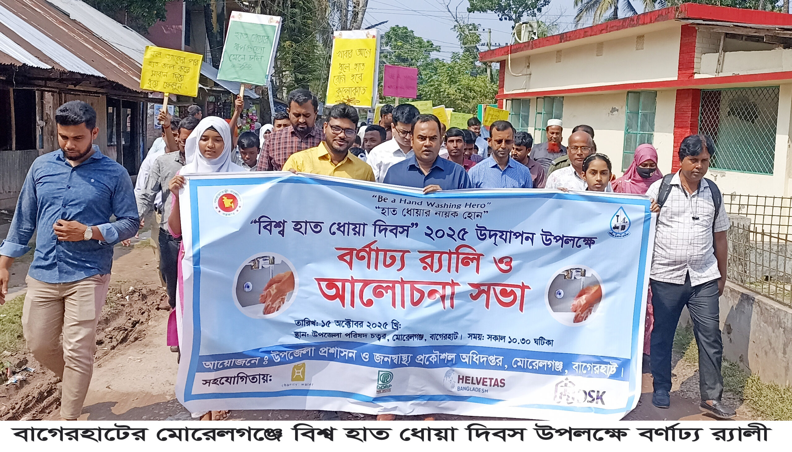 বাগেরহাটের মোরেলগঞ্জে বিশ্ব হাত ধোয়া দিবস ২০২৫ উপলক্ষে বর্ণাঢ্য র্যালি, আলোচনা সভা ও হাত ধোয়া প্রদর্শনী অনুষ্ঠিত হয়েছে। বুধবার সকাল সাড়ে ১০ টায় উপজেলা প্রশাসন ও জনস্বাস্থ্য প্রকৌশলী অধিদপ্তরের আয়োজনে উপজেলা চত্বর থেকে বিভিন্ন শিক্ষা প্রতিষ্ঠানের শিক্ষার্থী, উপজেলা প্রশাসন বিভিন্ন এনজিও প্রতিনিধি এ বর্ণাঢ্য র্যালীতে অংশ নেয়। র্যালীটি বিভিন্ন সড়ক প্রদক্ষিন শেষে পরে আলোচনা সভায় প্রধান অতিথির উপজেলা নির্বাহী অফিসার হাবিবুল্লাহ।