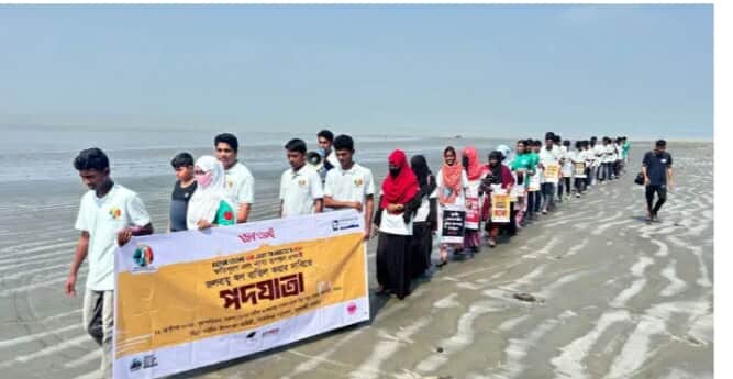ক্ষতিপূরণ এবং ন্যায্য রূপান্তর এখনই’ এই প্রতিপাদ্যকে ধারণ করে জলবায়ু ঋণ বাতিল করার দাবিতে বরগুনার তালতলীতে পদযাত্রা কর্মসূচি অনুষ্ঠিত হয়েছে।