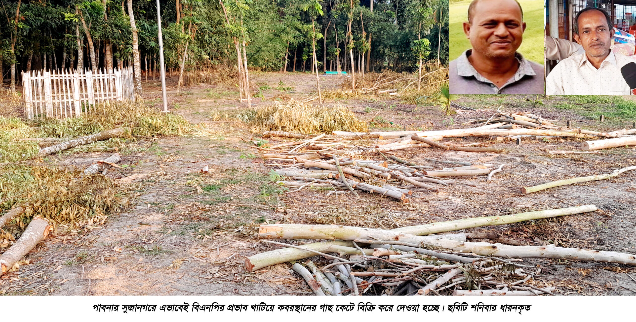 এম এ আলিম রিপন,সুজানগরঃ পাবনার সুজানগরে বিএনপির প্রভাব খাটিয়ে সর্বজনীন কবরস্থানের গাছ কেটে বিক্রি করে অর্থ আত্মসাৎ এর অভিযোগ উঠেছে স্থানীয় বিএনপির দুই নেতার বিরুদ্ধে। এ ঘটনায় দুলাই মডেল ইউনিয়ন পরিষদের প্রশাসক ও উপজেলা নির্বাহী অফিসারের কাছে লিখিত অভিযোগ করেছেন শাহজাহান আলী নামক স্থানীয় এক বাসিন্দা । লিখিত অভিযোগ পাওয়ার বিষয়টির সত্যতা নিশ্চিত করে শনিবার উপজেলা নির্বাহী কর্মকর্তা (ইউএনও) মীর রাশেদুজ্জামান রাশেদ জানান, এ ঘটনায় দুলাই ইউনিয়ন পরিষদের প্যানেল চেয়ারম্যানকে সুষ্ঠ তদন্ত পূর্বক দ্রুত প্রতিবেদন জমা দিতে বলা হয়েছে।অভিযুক্ত আব্দুর রাজ্জাক উপজেলার দুলাই ইউনিয়নের বামুন্দি এলাকার এবং অপর অভিযুক্ত নাছিম একই ইউনিয়নের চরজোড়পুকুরিয়া গ্রামের বাসিন্দা।এলাকাবাসী জানিয়েছেন অভিযুক্ত দুইজনই স্থানীয় বিএনপি নেতা।লিখিত অভিযোগ সূত্রে জানা গেছে, উপজেলার দুলাই ইউনিয়নের চরজোড়পুকুরিয়া, বামুন্দি,পাইকপাড়া ও তেবিলার আংশিক গ্রামের মানুষদের জন্য প্রায় ১০ বিঘা জমির উপর প্রতিষ্ঠিত একমাত্র সর্বজনীন কবরস্থানটিতে বিগত প্রায় ২০ বছর পূর্বে স্থানীয় লোকজন মেহগুনিসহ বিভিন্ন জাতের গাছ রোপণ করেছিলেন। পরিবেশ রক্ষা ও সৌন্দর্যবর্ধনের জন্য এসব গাছ অত্যন্ত গুরুত্বপূর্ণ হলেও গত একমাস পূর্বে এলাকার কাউকে কোন কিছু না জানিয়ে নিজেকে ওই কবরস্থানের সভাপতি দাবি করে বিএনপি নেতা ও চিনাখড়া কিয়ামউদ্দিন টেকনিক্যাল কলেজের প্রভাষক আব্দুর রাজ্জাক ছোট বড় প্রায় ৩০ টি গাছ ২লাখ ৩০ হাজার টাকায় বিক্রি করে সেই টাকা আত্মসাৎ করেন এবং এর একমাস পর গত দুইদিন আগে নাছিম নিজেকে ওই একই কবরস্থানের সভাপতি দাবি করে ছোট বড় প্রায় ২৫টি গাছ কর্তন করে ২লাখ ২০ হাজার টাকায় বিক্রি করে সেই টাকা আত্মসাৎ করেছেন বলে অভিযোগে উল্লেখ করা হয়েছে।লিখিত অভিযোগে আরও বলা হয়, গাছগুলো কেটে নিয়ে যাওয়ার এ ঘটনায় স্থানীয় জনসাধারণের মধ্যে তীব্র ক্ষোভ বিরাজ করছে। এ বিষয়ে প্রশাসনের হস্তক্ষেপ কামনা করে দোষীদের বিরুদ্ধে যথাযথ ব্যবস্থা গ্রহণের দাবি জানানো হয়েছে। গাছ কর্তনের ঘটনায় অভিযুক্ত ব্যক্তিদের বিরুদ্ধে আইনানুগ ব্যবস্থা গ্রহণের জন্য দ্রুত পদক্ষেপ নেওয়ার দাবি করা হয়।এ বিষয়ে স্থানীয় বাসিন্দা আবুল কাশেম মাস্টার বলেন, দলীয় প্রভাব খাটিয়ে এ ধরনের কাজকর্ম কাম্য নয়। এগুলো প্রতিহত না করলে দলের ইমেজ নষ্ট হবে।এ বিষয়ে জানতে চাইলে বিএনপি নেতা অভিযুক্ত আব্দুর রাজ্জাক ও নাছিম উভয় ব্যক্তিই নিজেদেরকে ওই কবরস্থানের বর্তমান সভাপতি দাবি করে গাছ কাটার বিষয়ে নিজেদের সম্পৃক্ততার কথা স্বীকার করে বলেন, গাছ বিক্রির টাকা তারা ব্যাংকে জমা রেখেছেন। এ বিষয়ে দুলাই মডেল ই