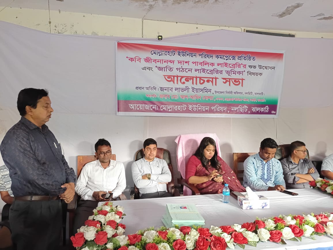 নলছিটির মোল্লারহাট ইউনিয়ন পরিষদ কমপ্লেক্সে চালু হলো পা-বলিক লাইব্রেরি