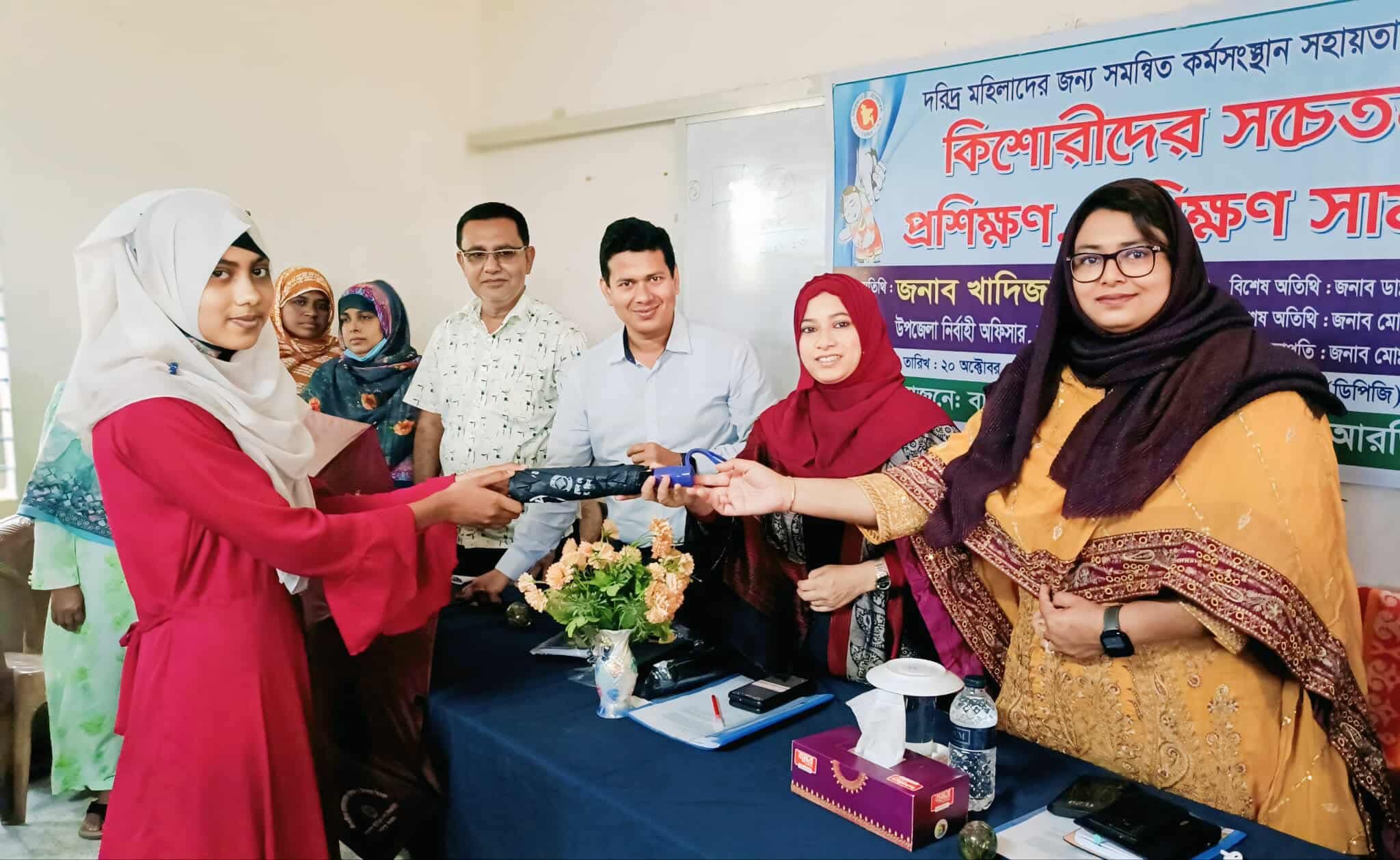 দিনব্যাপী এই প্রশিক্ষণে এলাকার কিশোরীরা আত্মরক্ষা, স্বাস্থ্য সচেতনতা, সামাজিক মূল্যবোধ এবং কর্মজীবনের প্রাথমিক ধারণা সম্পর্কে প্রশিক্ষণ গ্রহণ করে। পরে ১০০ জন শিক্ষার্থীদের মাঝে ছাতা বিতরণ করা হয় ।