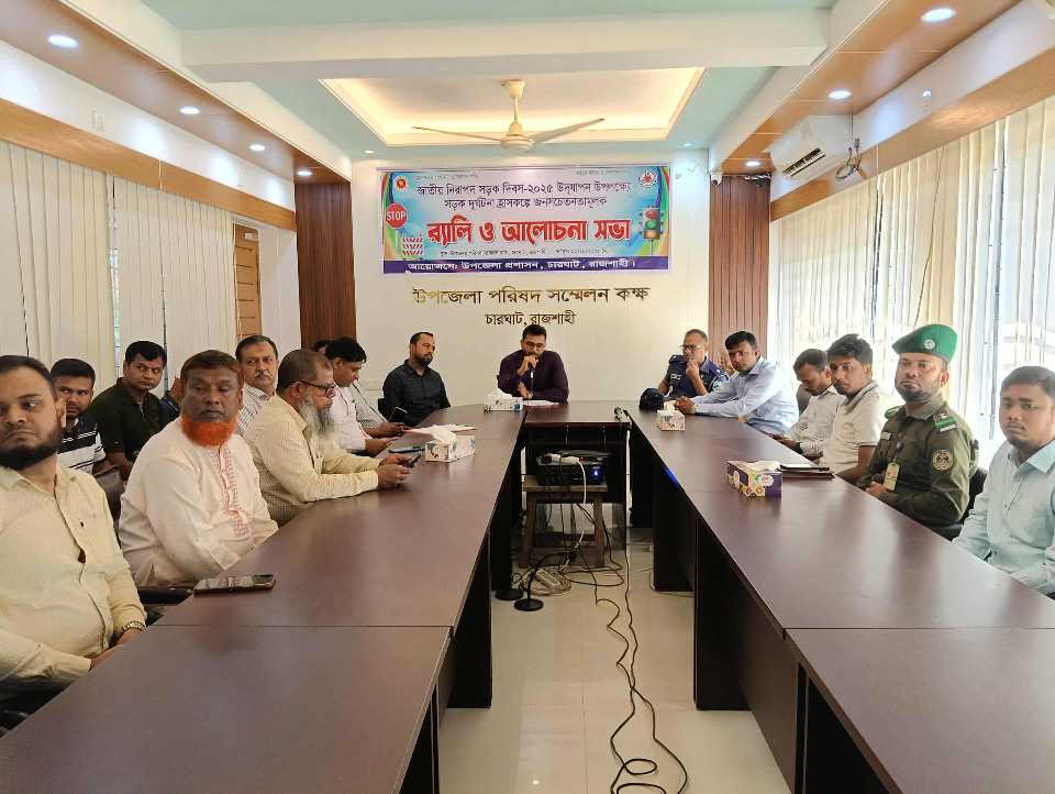চারঘাটে জাতীয় নি-রাপদ সড়ক দিবস উপলক্ষে র‍্যালি ও আলোচনা সভা অনুষ্ঠিত