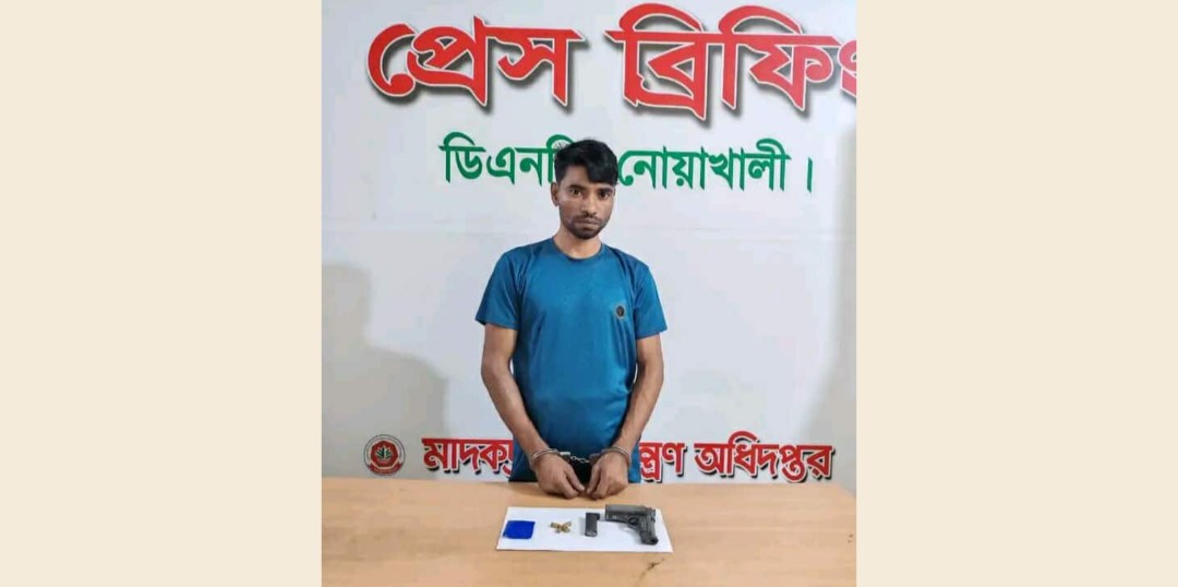 নোয়াখালীর বেগমগঞ্জে এক মাদক কারবারিকে ৩৬ পিস ইয়াবা, পিস্তল-গুলিসহ গ্রেপ্তার করেছে মাদকদ্রব্য নিয়ন্ত্রণ অধিদপ্তর।
