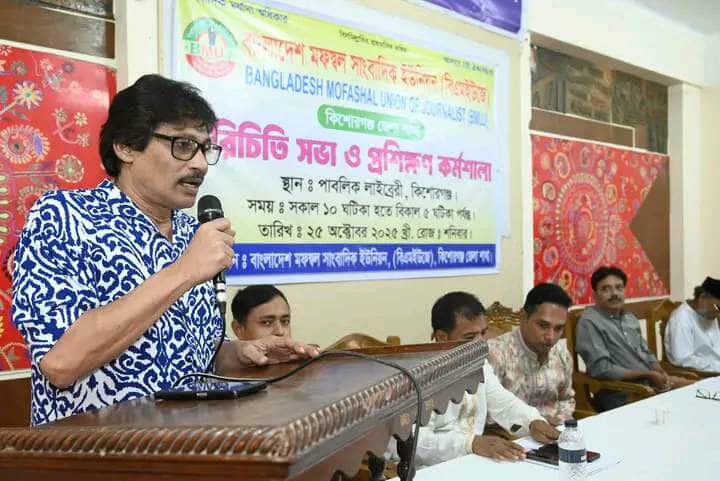 বাংলাদেশ মফস্বল সাংবাদিক ইউনিয়ন (বিএমইউজে) কিশোরগঞ্জ জেলা শাখা আয়োজিত পরিচিতি ও প্রশিক্ষণ কর্মশালা শনিবার (২৫ অক্টোবর) সকাল ১০ ঘটিকায় কিশোরগঞ্জ পাবলিক লাইব্রেরী হলে অনুষ্ঠিত হয়। অনুষ্ঠানের প্রশিক্ষণ কর্মশালায় ২৫ জন প্রশিক্ষণার্থী প্রশিক্ষণ গ্রহণ করেন, প্রথম অধিবেশনে সভাপতিত্ব করেন বিএমইউজে জেলা সভাপতি দৈনিক কালের সংবাদ সম্পাদক খায়রুল ইসলাম।