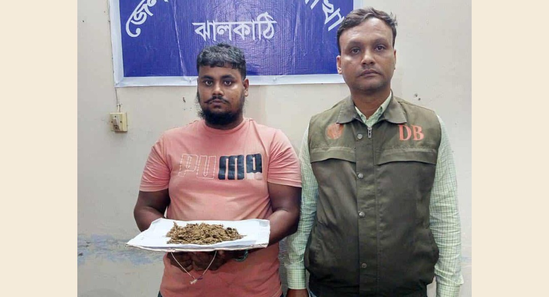 ঝালকাঠি জেলা গোয়েন্দা (ডিবি) পুলিশের অভিযানে নলছিটিতে ১০০ গ্রাম মাদকদ্রব্য গাঁজাসহ এক যুবককে গ্রেপ্তার করা হয়েছে। সোমবার (২৭ অক্টোবর ২০২৫) রাত সাড়ে ১১টার দিকে নলছিটি উপজেলার সুবিদপুর ইউনিয়নের গোদন্ডা গ্রামের বেল্লাল হোসেনের মাছের ঘেরের সামনে ইটের সোলিং রাস্তা থেকে তাকে আটক করে ডিবি পুলিশ।