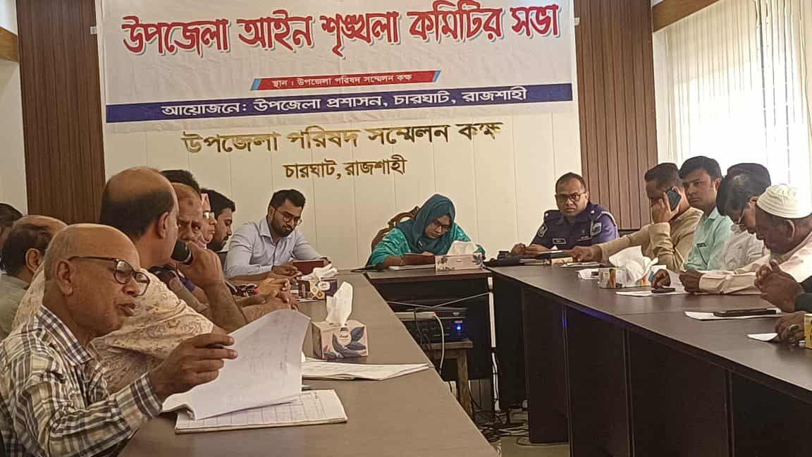 রাজশাহীর চারঘাট উপজেলা আইন শৃঙ্খলা কমিটির মাসিক সভা অনুষ্ঠিত হয়েছে। বুধবার সকাল সাড়ে ১০ টায় উপজেলা পরিষদ সম্মেলন কক্ষে এই সভা অনুষ্ঠিত হয়।