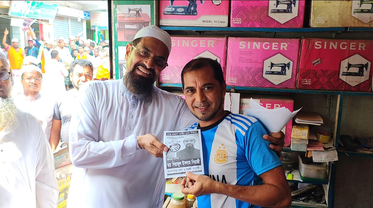 সিরাজুল ইসলাম উপজেলা চত্বর থেকে নেতাকর্মীদের সাথে নিয়ে পুরানবাজারসহ শহরের বিভিন্ন গুরুত্বপূর্ণ স্থানে সাধারণ মানুষজনের মাঝে হাত পাখা মার্কার লিফলেট বিতরণ করেন।