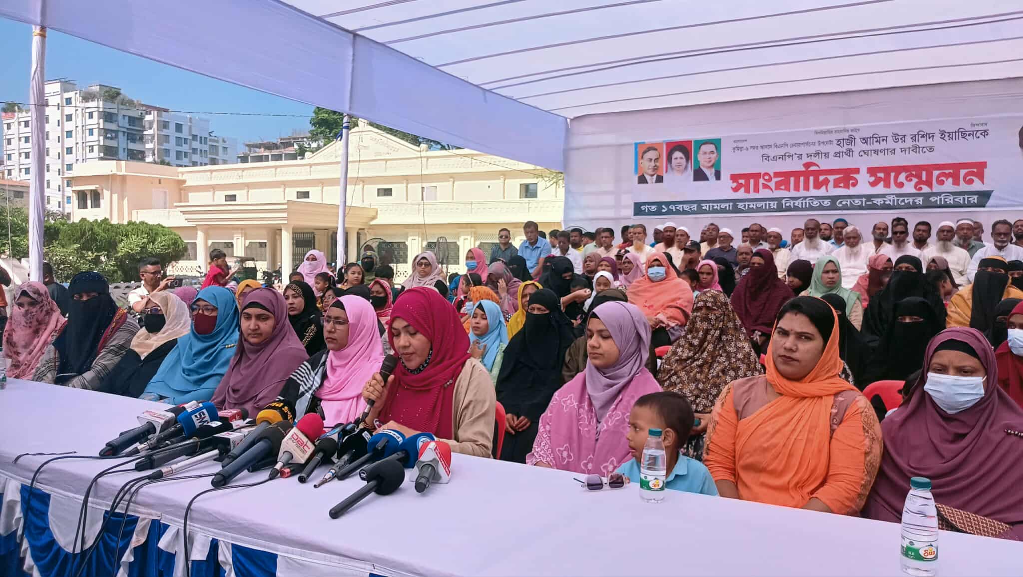 বিএনপি নেতা মাহাবুব চৌধুরীর স্ত্রী ও স্কুলশিক্ষক নাসরিন খানম ও সাবেক ছাত্র দলের সভাপতি ফখরুল ইসলাম মিঠুর স্ত্রী সংবাদ সম্মেলনে বলেন, “আমরা নির্যাতিত পরিবারগুলো আশা করছি, তারেক রহমান ভাই মনিরুল হক চৌধুরীকে বাদ দিয়ে হাজী আমিনুর রশিদ ইয়াছিনকে ধানের শীষ প্রতীক দেবেন। তিনিই আমাদের সত্যিকারের জননেতা।”