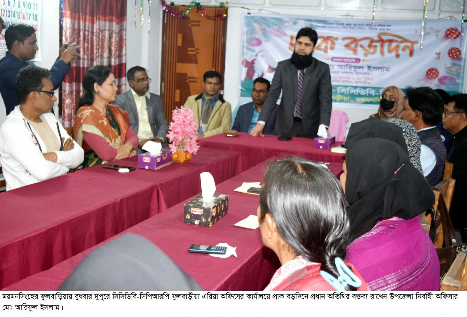 মো: সেলিম মিয়া ফুলবাড়িয়া প্রতিনিধি : জীবন জীবিকার মানউন্নয়নে সিসিডিবি-সিপিআরপি’র উদ্যোগে ফোরামের সদস্যদের মাঝে আর্থিক সহায়তার চেক বিতরণ ও প্রাক বড়দিন উদযাপন করা হয়েছে। বুধবার (১৭ ডিসেম্বর) দুপুর ১২.০০ টায় সিসিডিবি-সিপিআরপি ফুলবাড়ীয়া এরিয়া অফিসের কার্যালয়ে উপকারভোগীদের জীবন জীবিকার মান উন্নয়নের লক্ষ্যে ফোরাম সদস্যদের মাঝে আর্থিক সহায়তার চেক বিতরণী অনুষ্ঠানের আয়োজন করা হয়। এতে প্রধান অতিথি হিসেবে উপস্থিত ছিলেন উপজেলা নির্বাহী অফিসার মো: আরিফুল ইসলাম। বিশেষ অতিথি উপজেলা সিনিয়র মৎস্য কর্মকর্তা মোঃ ফরিদুল ইসলাম, উপজেলা কৃষি অফিসার নূর মোহাম্মদ, থানা অফিসার ইর্নচাজ (ওসি) মো: সাইফুল্লাহ সাইফ, উপজেলা সমাজ সেবা অফিসার মোঃ মোজাম্মেল হক, উপজেলা সমবায় অফিসার মোঃ জাহাঙ্গীর আলম, ফুলবাড়ীয়া পাষ্টর ভিক্টরিয়া এজি চার্চ মিঃ সেন্টু মীর, ফুলবাড়ীয়া ওয়ার্ল্ড ভিশন এপি ম্যানেজার নম্রতা হাউই, প্রভাষক মোঃ মতিউর রহমান মতিন প্রমূখ।