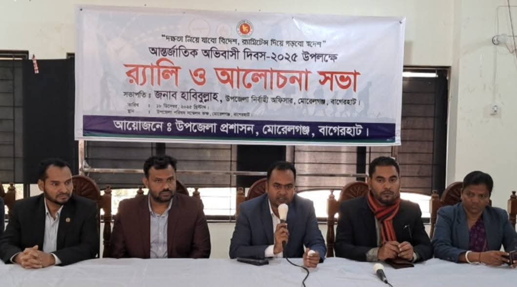“দক্ষতা নিয়ে যাবো বিদেশ, রেমিট্যান্স দিয়ে গর্ব স্বদেশ”—এই সময়োপযোগী প্রতিপাদ্যকে সামনে রেখে বাগেরহাটের মোরেলগঞ্জে নানা আয়োজনের মধ্য দিয়ে উদযাপিত হয়েছে আন্তর্জাতিক অধিবাসী দিবস–২০২৫। দিবসটি উপলক্ষে উপজেলা প্রশাসনের উদ্যোগে অনুষ্ঠিত হয় বর্ণাঢ্য র্যালি ও আলোচনা সভা।