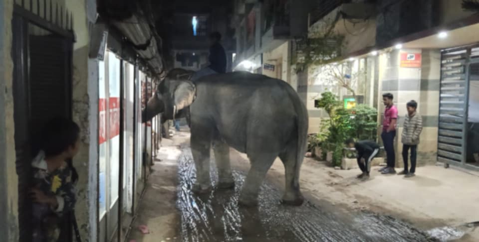 প্রত্যক্ষদর্শীরা জানান, একটি হাতি নিয়ে এক ব্যক্তি রাস্তায় ঘোরাফেরা করে দোকান ও মানুষের সামনে হাতি দাঁড় করিয়ে আতঙ্ক সৃষ্টি করে। এ সময় চাঁদা আদায়ের চেষ্টা করা হলে কয়েকজন মোবাইলে ভিডিও ধারণ করতে শুরু করেন। বিষয়টি টের পেয়ে হাতিসহ ওই ব্যক্তি দ্রুত ঘটনাস্থল ত্যাগ করে।