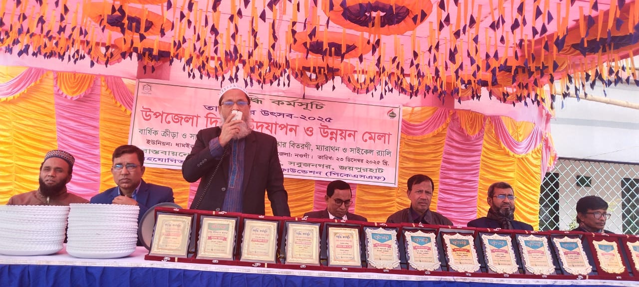 নওগাঁর ধামইরহাটে বার্ষিক ক্রীড়া ও সাংস্কৃতিক প্রতিযোগিতার পুরস্কার বিতরণ, ম্যারাথন ও সাইকেল র্যালি অনুষ্ঠিত। ২৩ ডিসেম্বর (মঙ্গলবার) সকাল ১১ টায় জগদল আদিবাসী স্কুল ও কলেজ মাঠে জাকস ফাউন্ডেশন, সবুজ নগর, জয়পুরহাটের আয়োজনে এবং পল্লী কর্ম সহায়ক ফাউন্ডেশন (পিকেএসএফ) এর সহযোগিতায় সমৃদ্ধি কর্মসূচি তারুণ্যের উৎসব ২০২৫ উপজেলা দিবস ও উন্নয়ন মেলা অনুষ্ঠিত হয়েছে।
