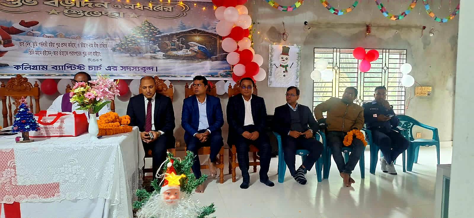 এ সময় কলিগ্রাম ব্যাপ্টিষ্ট চার্চের পালক রেভারেন্ড পংকজ মন্ডলের সভাপতিত্বে প্রধান অতিথি হিসেবে বাংলাদেশ ব্যাপ্টিষ্ট চার্চ সংঘের সহ-সভাপতি মিস্টার উইলিয়াম ঢালী। বিশেষ অতিথি হিসেবে গোপালগঞ্জ জেলা পরিষদের নির্বাহী প্রকৌশলী অমিত কুমার দেবনাথ, মুকসুদপুর উপজেলা নির্বাহী অফিসার (ইউএনও) মাহমুদ আশিক কবির, মুকসুদপুর থানা অফিসার্স ইনচার্জ(ওসি) আব্দুল্লাহ আল মামুন, আঞ্চলিক ব্যাপ্টিষ্ট চার্চ সংঘের সহ-সভাপতি জেমস হেবল বাড়ৈ, চার্জের কোষাধাক্ষ অশোক বৈরাগী, পরিচালক মার্ক সিকদার,কলিগ্রাম ব্যাপ্টিষ্ট চার্চে সম্পাদক জ্যাকব বৈদ্য সহ সম্পাদক ও জলিলপাড় ইউনিয়ন পরিষদের প্যানেল চেয়ারম্যান ইলিয়াকিম কুন্দার, চার্চ সেবক কমিটির সভাপতি মোহনলাল বৈরাগী, কলিগ্রাম ব্যাপ্টিষ্ট চার্চের সাবেক পালক প্রমঞ্জন বালা সহ এলাকার খ্রিস্টান ধর্মালম্বী শিশু যুবক, বৃদ্ধসহ অনেকে উপস্থিত ছিলেন।
