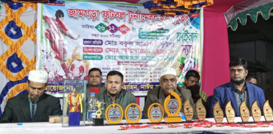 শুক্রবার (২৬ ডিসেম্বর ২০২৫ইং) রাত সাড়ে ৯টায় জামগড়া সরকারি প্রাথমিক বিদ্যালয় মাঠে ফুটবল টুর্নামেন্টের উদ্বোধনী খেলা শুরু হয়। উক্ত খেলায় প্রধান অতিথি হিসেবে উপস্থিত ছিলেন আন্তর্জাতিক মানবাধিকার সাংবাদিক সংস্থার কেন্দ্রীয় কমিটির সদস্য ও আশুলিয়া থানা তাঁতি দলের সহ-সভাপতি আলহাজ্ব বকুল ভুঁইয়া।