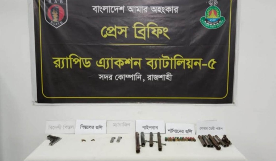 তানোরে র্যাবের অ-ভিযানে পি-স্তলসহ গো-লাবারুদ উদ্ধার