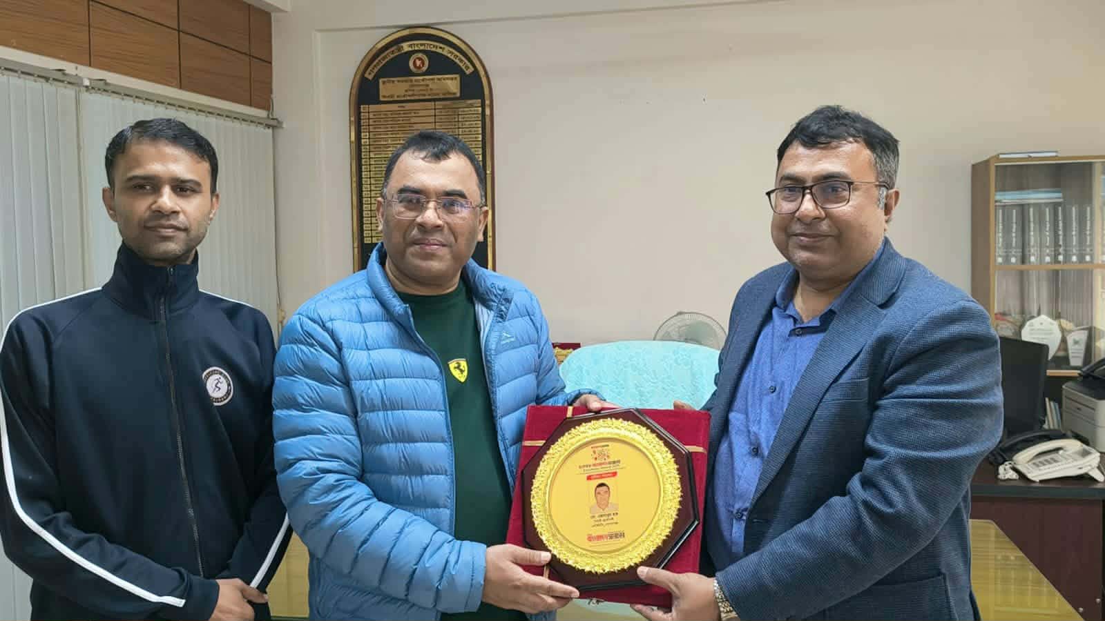 শনিবার (৩ জানুয়ারি) বিকালে গোপালগঞ্জ এলজিইডি’র নির্বাহী প্রকৌশলীর কার্যালয়ে তার হাতে এ সম্মাননা ক্রেস্ট তুলে দেন দেশের অন্যতম শীর্ষ স্থানীয় জাতীয় দৈনিক বাংলাদেশ সমাচার এবং দ্য বাংলাদেশ ডায়েরী পত্রিকার সম্পাদক ও প্রকাশক ডঃ খান আসাদুজ্জামান।
