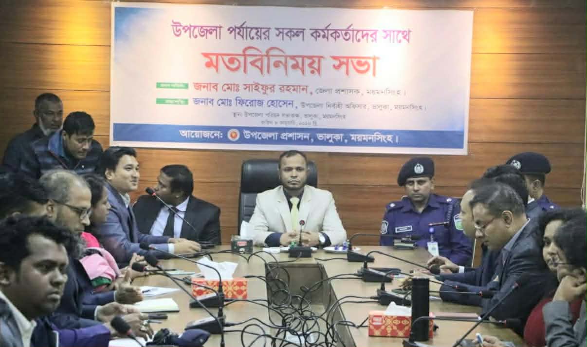 আসন্ন ত্রয়োদশ জাতীয় সংসদ নির্বাচন ও গণভোটের প্রস্তুতি বিষয়ে ময়মনসিংহের ভালুকায় ইউএনও, থানার ওসিসহ উপজেলায় কর্মরত কর্মকর্তাদের সঙ্গে মতবিনিময় সভা অনুষ্ঠিত হয়েছে।