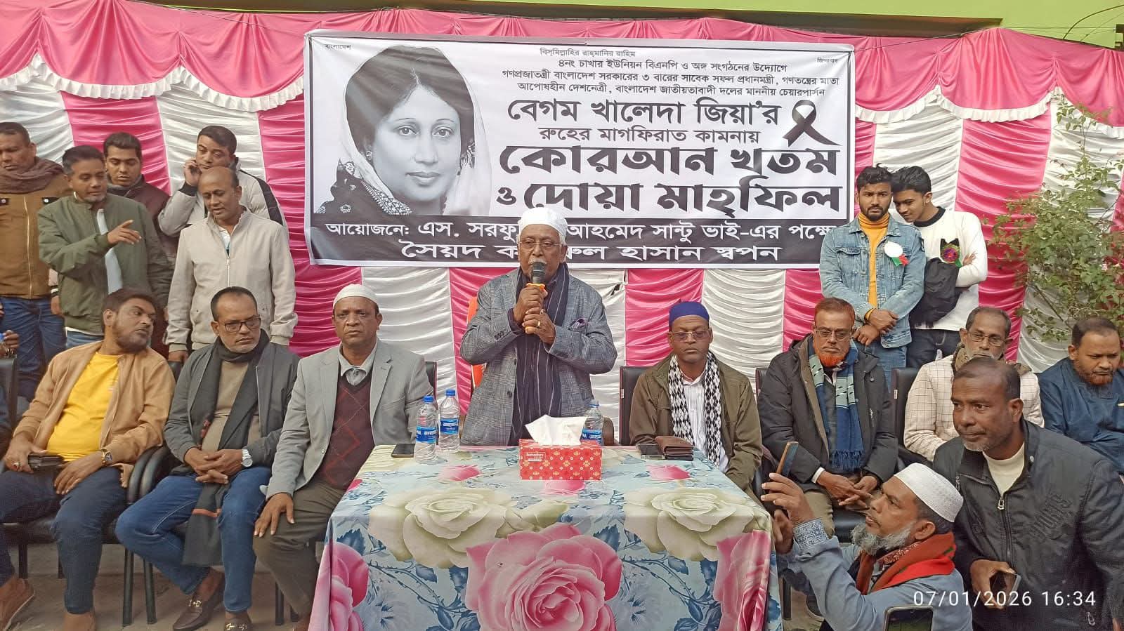 দোয়া মাহফিলে বেগম খালেদা জিয়ার দ্রুত সুস্থতা কামনা করে বিশেষ মোনাজাত পরিচালনা করা হয়।