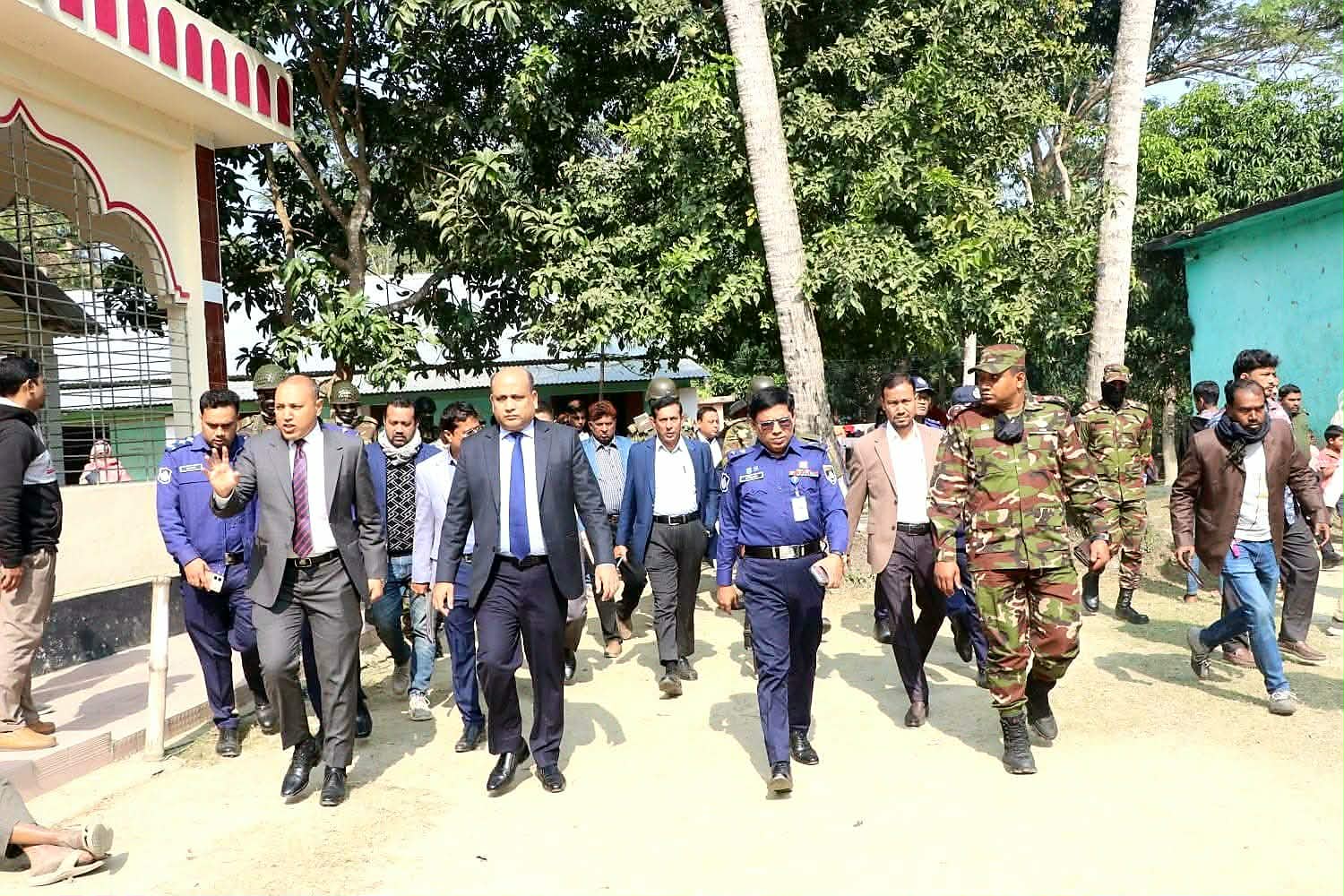 আজ সোমবার (১২ জানুয়ারি) বেলা সাড়ে ১০ টায় মুকসুদপুর উপজেলায় পৌঁছে তারা প্রথমে বাটিকামারী উচ্চ বিদ্যালয়, এরপর বড় বনগ্রাম সরকারি প্রাথমিক বিদ্যালয় এবং তারপর গোলাবাড়িয়া সরকারি প্রাথমিক বিদ্যালয় সহ অন্যান্য গুরুত্বপূর্ণ ভোটকেন্দ্র পরিদর্শন করেন।