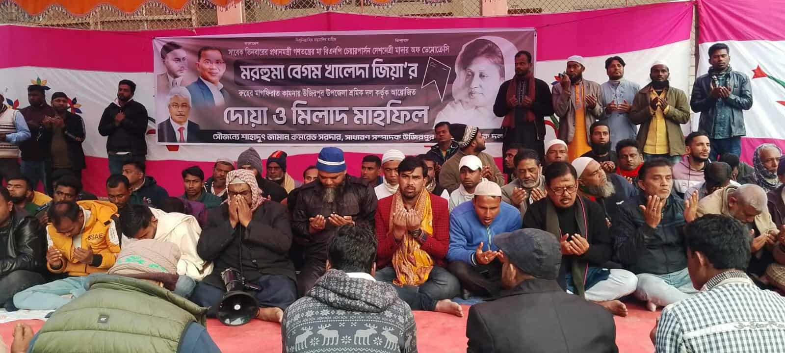 গত ১৫ জানুয়ারি বাদ আছর উজিরপুর পৌর সদর মহিলা কলেজ মাঠে এ দোয়া ও মিলাদ মাহফিল অনুষ্ঠিত হয়। অনুষ্ঠানে সভাপতিত্ব করেন উপজেলা শ্রমিক দলের সভাপতি মোহাম্মদ জিয়া আমিন রাড়ি। প্রধান অতিথি হিসেবে উপস্থিত ছিলেন উজিরপুর উপজেলা বিএনপির সাধারণ সম্পাদক মোঃ হুমায়ুন খান।