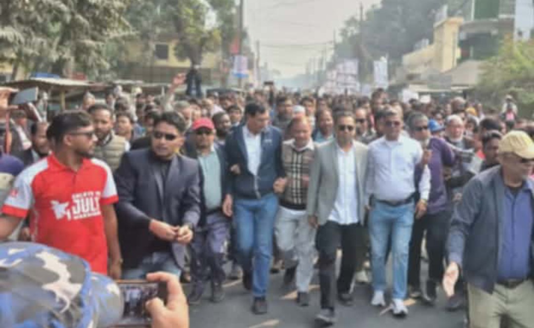 ধানের শীষ ও প্রার্থী তুহিনের পোস্টার হাতে নিয়ে মিছিলে অংশ নেন নেতা কর্মীরা। প্রসঙ্গত এ্যাসোসিয়েশন অব ইঞ্জিনিয়ার্স বাংলাদেশ(এ্যাব) এর কেন্দ্রীয় আহবায়ক প্রকৌশলী তুহিন।