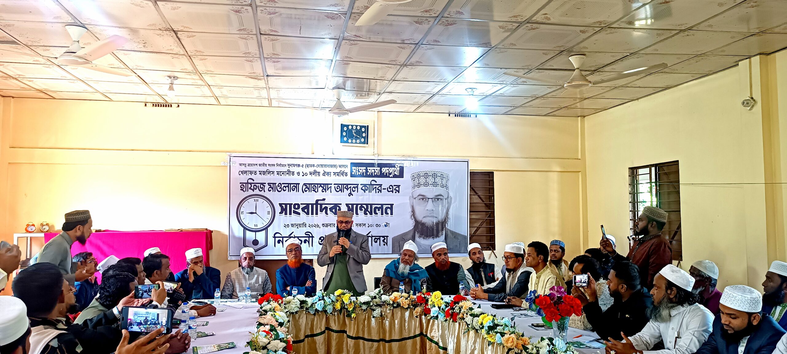 খেলাফত মজলিস মনোনীত ও ১০ দলীয় ঐক্য সমর্থিত হাফিজ মাওলানা আব্দুল কাদির এর সাংবাদিক সম্মেলন