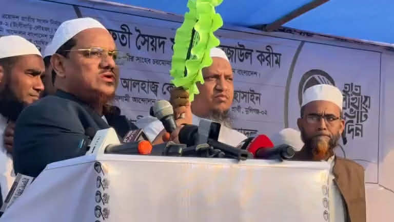 এ সময় তিনি ইসলামি আন্দোলন বাংলাদেশের মনোনিত প্রার্থী কে এম বিল্লাল হোসাইনের জন্য ভোট প্রার্থনা করেন।