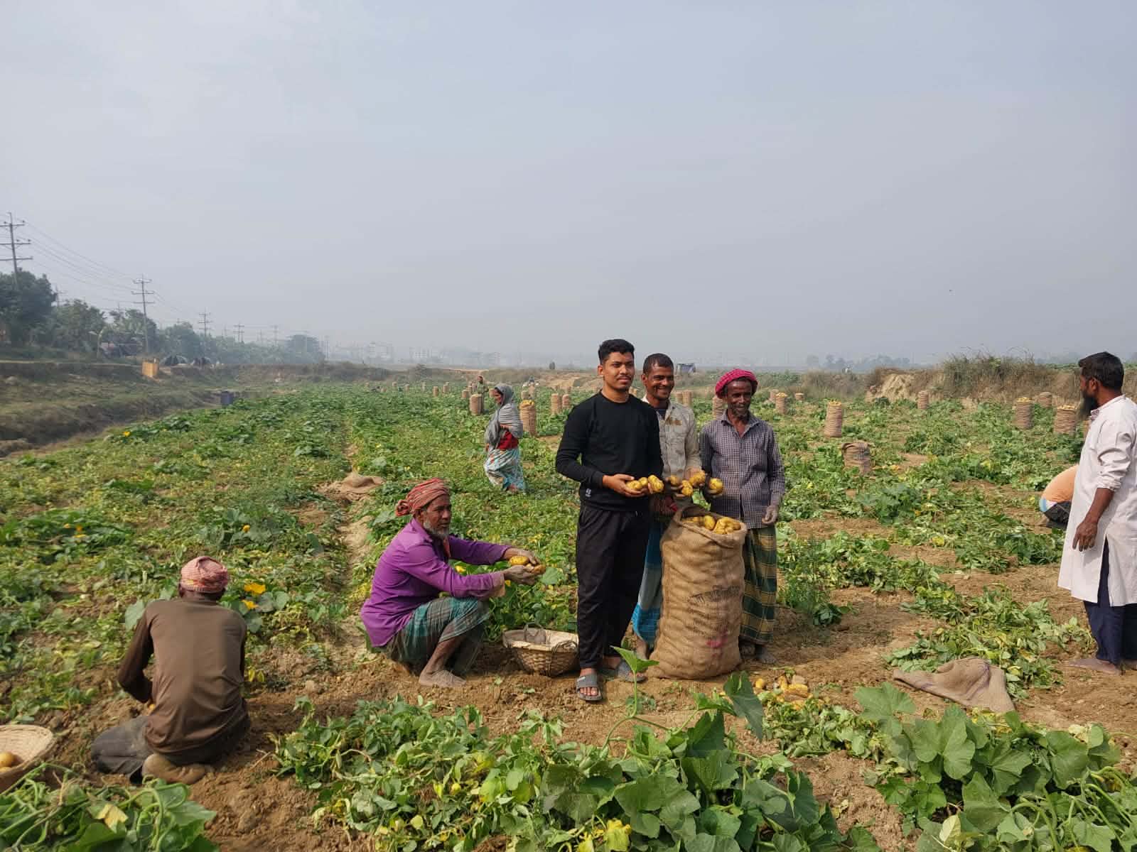 গোমতীর চরে মিষ্টি কুমড়া গাছের ফাঁকে আলু চাষে শিক্ষার্থী সাইফুলের সাফল্য