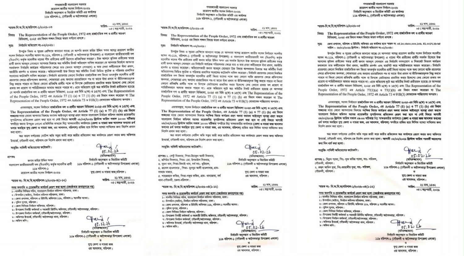 যার অনুলিপি বাংলাদেশ নির্বাচন কমিশন সচিবালয়ের সিনিয়র সচিবসহ সংশ্লিষ্ট আট দপ্তরের কর্মকর্তাদের দেওয়া হয়েছে। পাশাপাশি কারণ দর্শানোর নোটিশ জারী করে তার প্রতিবেদন অত্র কার্যালয়ে প্রেরণের জন্য গৌরনদী মডেল থানার অফিসার ইনচার্জকে নির্দেশ প্রদান করা হয়েছে।