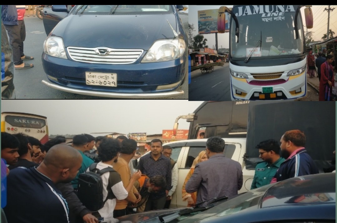 প্রত্যক্ষদর্শীরা জানান, যমুনা লাইন পরিবহনের একটি বাস (ঢাকা মেট্রো ব-১২-৪৮৬৮) বাসস্ট্যান্ডের পাশে যাত্রী তুলছিল। এ সময় পিছন দিক থেকে আসা একটি প্রাইভেটকার সামনে স্টিকার সমাজসেবা অফিসার সানজিদা আয়েশার ব্যক্তিগত প্রাইভেটে গাড়ির নাম্বার (ঢাকা মেট্রো খ-১২-৬৩২৭) থামানো নিয়ে দুই চালকের মধ্যে কথা কাটাকাটি শুরু হয়। এক পর্যায়ে প্রাইভেটকার চালক লোহার পাইপ সদৃশ বস্তু দিয়ে আঘাত করতে গেলে বাসচালক হাত দিয়ে ঠেকাতে গিয়ে কেটে যান এবং রক্তপাত হয়।