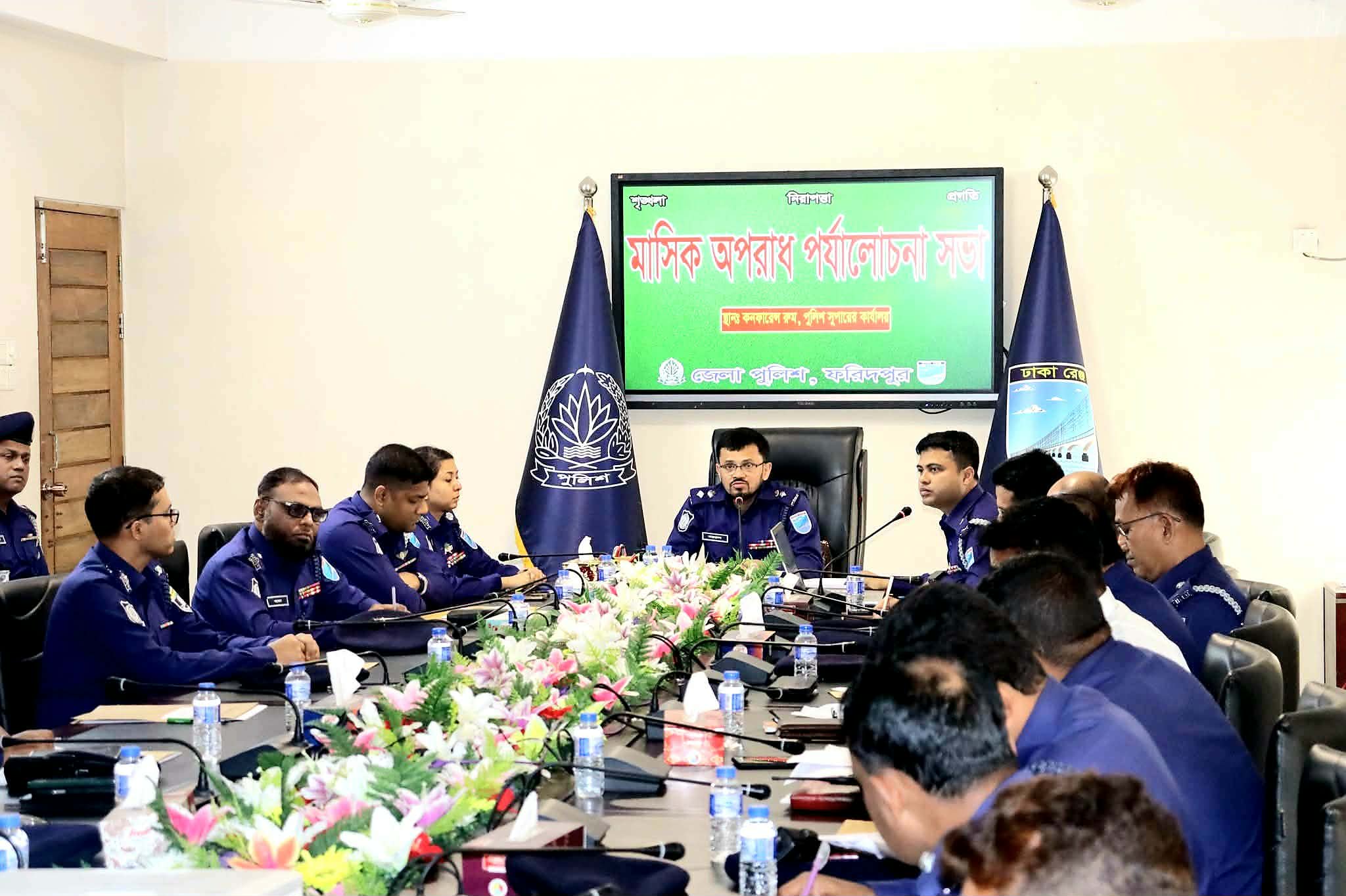 বাংলাদেশ পুলিশ, ঢাকা রেঞ্জের অন্তর্ভুক্ত ফরিদপুর জেলা পুলিশের মাসিক অপরাধ পর্যালোচনা সভা অনুষ্ঠিত হয়েছে।