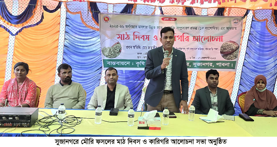 এম এ আলিম রিপন,সুজানগরঃ পাবনার সুজানগর উপজেলার সাগরকান্দিতে উপজেলা কৃষি অফিসারের কার্যালয়ের আয়োজনে মসলার উন্নত জাত ও প্রযুক্তি সম্প্রসারণ প্রকল্পের(১ম সংশোধিত) আওতায় মৌরি ফসলের মাঠ দিবস ও কারিগরি আলোচনা সভা অনুষ্ঠিত হয়েছে।উপজেলা কৃষি অফিসার কৃষিবিদ মোঃ আসাদুজ্জামান এর সভাপতিত্বে এ মাঠ দিবস এবং কারিগরি আলোচনা সভায়প্রধান অতিথির বক্তব্য দেন পাবনা কৃষি সম্প্রসারণ অধিদপ্তরের উপপরিচালক কৃষিবিদ মোঃ জাহাঙ্গীর আলম প্রামানিক । বিশেষ অতিথি ছিলেন পাবনা কৃষি সম্প্রসারণ অধিদপ্তরের কার্যালয়ের অতিরিক্ত উপপরিচালক (শস্য) মো: রাফিউল ইসলাম। উপ-সহকারী কৃষি কর্মকর্তা মো: সাইদুল ইসলামের সঞ্চালনায় অনুষ্ঠানে স্বাগত বক্তব্য দেন উপ-সহকারী কৃষি কর্মকর্তা সম্পা রানী।অনুষ্ঠানে দেড় শতাধিক কৃষক-কৃষাণি অংশ নেন। বক্তাগণ মুড়ি কাটা পেঁয়াজ জমিতে সাথী ফসল হিসাবে বারি মৌরি -১ চাষ করার পরামর্শ প্রদান করেন।