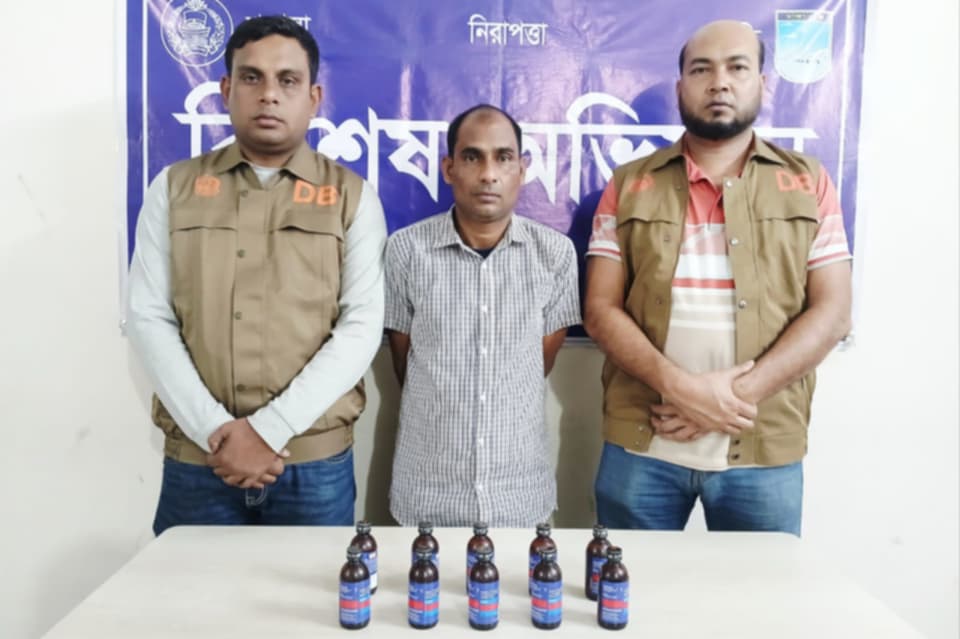 গ্রেফতারকৃত কামরুজ্জামান কামরুল চাঁপাইনবাবগঞ্জের শিবগঞ্জ থানার কালিগঞ্জের মোঃ এরফান আলীর ছেলে। এ/পি সাং-আর-ইবি রোড, পল্লীবিদ্যুৎ,থানা-আশুলিয়া, জেলা-ঢাকাকে ১০ বোতল ভারতীয় তৈরি ফেনসিডিলসহ গ্রেফতার করেন বলে ডিবি পুলিশ জানায়। উল্লেখ্য যে, বর্নিত আসামীর বিরুদ্ধে আরও ০৬টি মাদকসহ অন্যান্য মামলা রয়েছে।