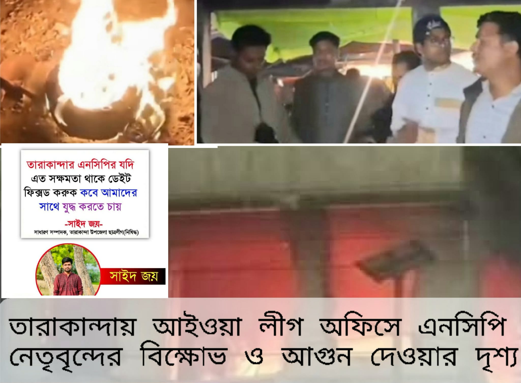 এ ঘটনার একটি ভিডিও সামাজিক যোগাযোগমাধ্যম ফেসবুকে ছড়িয়ে পড়লে ক্ষোভে রাত ৮টার দিকে বৈষম্যবিরোধী আন্দোলন ও এনসিপি নেতাকর্মীরা কার্যালয়ের ভেতরে গিয়ে বিক্ষোভ করেন। এ সময় কার্যায়লয়ের ভেতরে টায়ার দিয়ে আগুন ধরিয়ে দেওয়া হয় ও ভাঙচুর করা হয়। পরে বিক্ষোভকারীরা তারাকান্দা থানায় গিয়ে জড়িত সবাইকে গ্রেপ্তারের দাবি জানান।