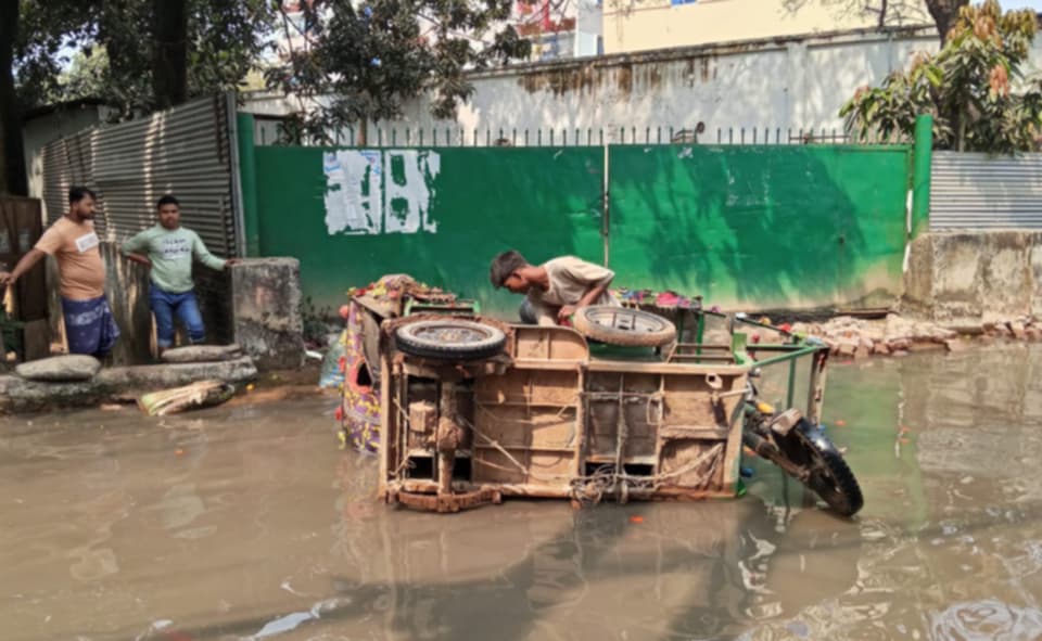 সরেজমিনে দেখা গেছে, টানা কয়েকদিনের পানিবদ্ধ অবস্থার কারণে সড়কের বিভিন্ন অংশে খানাখন্দ তৈরি হয়েছে। পানি জমে থাকায় এসব গর্ত চোখে না পড়ায় মোটরসাইকেল, রিকশা ও ছোট যানবাহন উল্টে দুর্ঘটনার শিকার হচ্ছে। স্থানীয়দের অভিযোগ, বছরের পর বছর ধরে এই সমস্যা চললেও কার্যকর কোনো স্থায়ী সমাধান হয়নি।