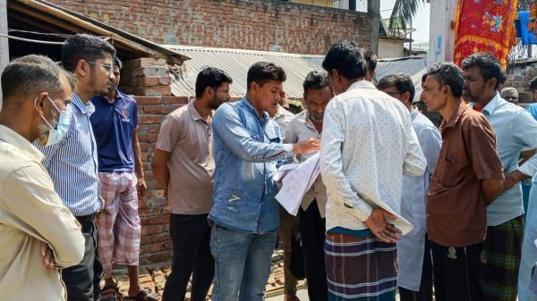 রাজশাহীর পুঠিয়া উপজেলার তাহেরপুর রাস্তার মাথায় মন্দিরের জায়গায় অবৈধভাবে নির্মিত স্থাপনার কাজ বন্ধ করে দিয়েছেন সহকারী কমিশনার (ভূমি) শিবু দাশ।