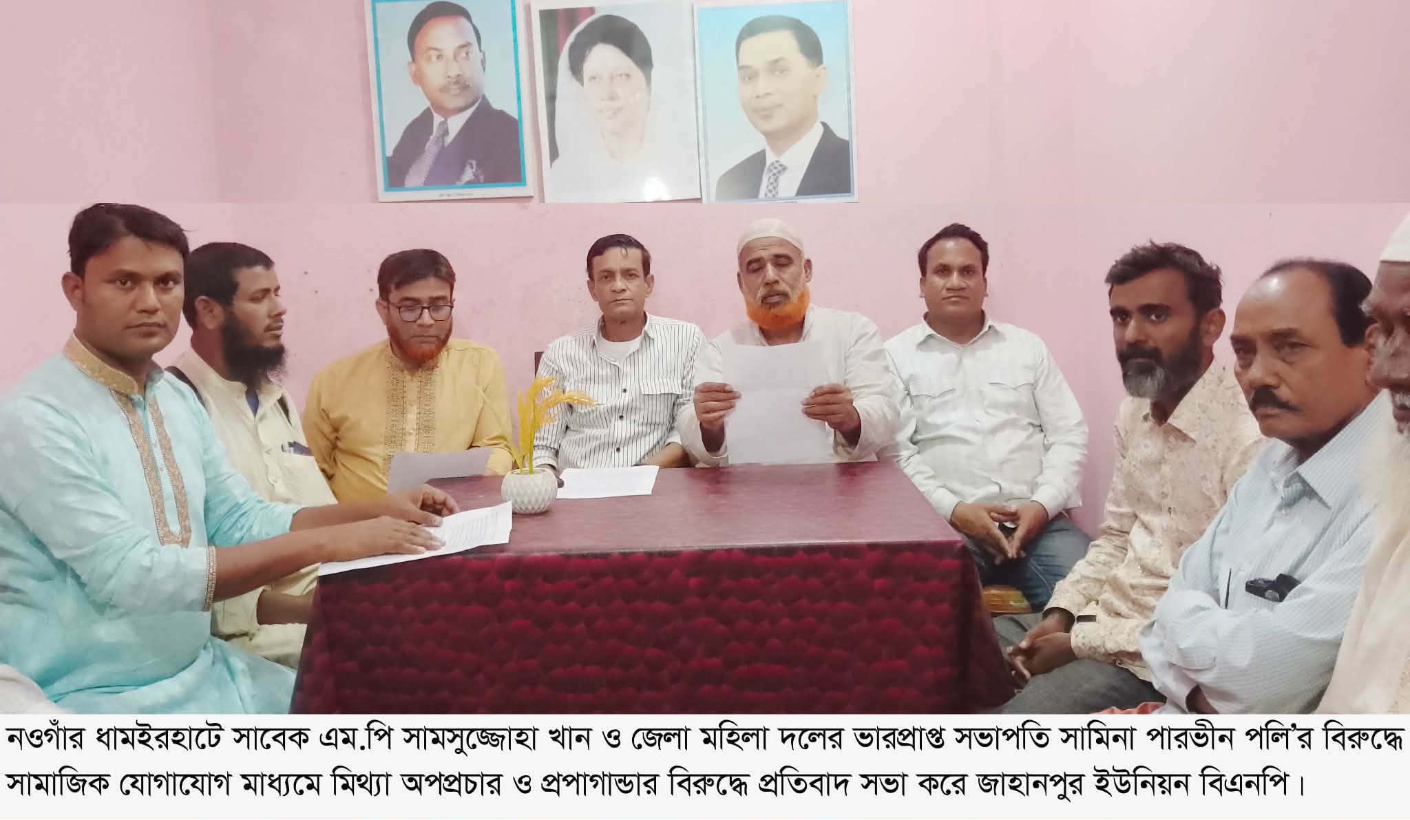 নওগাঁ-২ আসনের সাবেক এমপি সামসুজ্জোহা খানের বিরুদ্ধে বিভিন্ন ফেসবুকে মিথ্যা প্রপাগান্ডা ছড়ানোর প্র/তিবাদে সংবাদ সম্মেলন