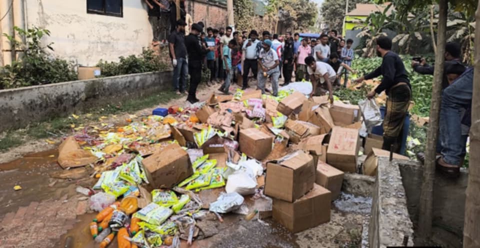 আশুলিয়ায় অ-বৈধ জুস কারখানায় অ-ভিযানে সকল মালামাল ধ্বং-স