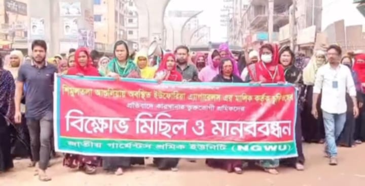 আশুলিয়ায় পোশাক শ্রমিকদের বকেয়া বেতন পরিশোধ ও বন্ধ কারখানা চালুর দাবিতে বিক্ষো-ভ