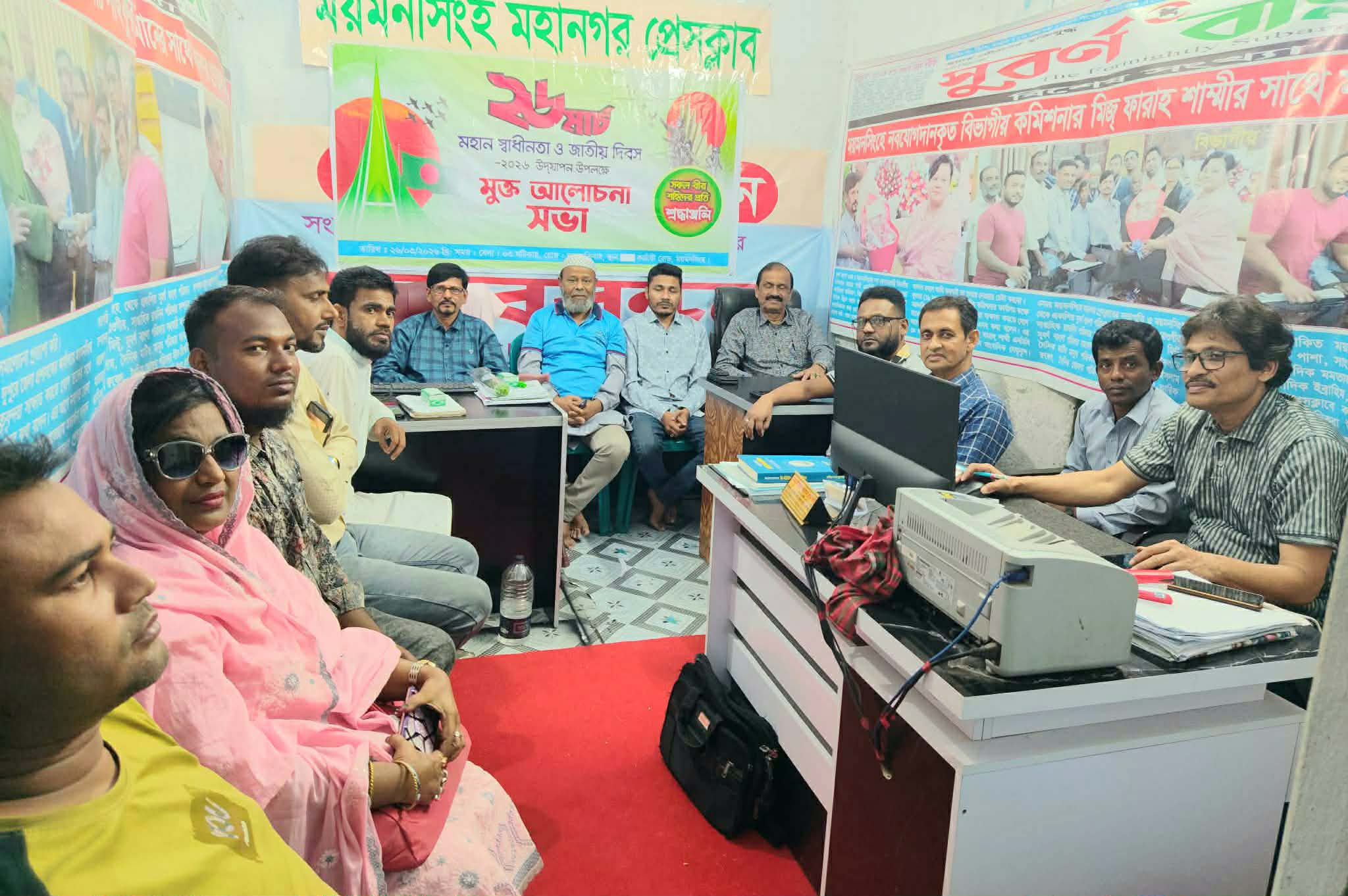 স্টাফ রিপোর্টার \ শ্রদ্ধা ও ভালবাসায় ১৯৭১ সালে মহান মুক্তিযুদ্ধে অংশগ্রহণকারী বীর শহীদদের স্মরণ করেছে ময়মনসিংহ মহানগর প্রেসক্লাবের নেতৃবৃন্দ। দিবসটি যথাযযোগ্য মর্যাদায় উদযাপনের লক্ষে দিনব্যাপী বিভিন্ন কর্মসূচি পালন করা হয়েছে। কর্মসূচির অংশ হিসাবে বৃহস্পতিবার (২৬ মার্চ) সকালে নগরীর পাটগুদাম ব্রীজ মোড় এলাকায় অবস্থিত স্মৃতিসৌধে ময়মনসিংহ মহানগর প্রেসক্লাব সভাপতি মোঃ আরিফ রেওগীরের নেতৃত্বে পুষ্পার্ঘ্য অর্পর করে বীর শহীদদের প্রতি শ্রদ্ধা জানানো হয়। পুষ্পার্ঘ্য অর্পন শেষে বীর শহীদদে স্মরণে দাঁড়িয়ে ১ মিনিট নীরবতা পালন করা হয়। পরে বিকাল ৩ টায় নগরীর ৪৭ কাঁচারী রোডস্থ প্রেসক্লাব মিলনায়তনে মহান স্বাধীনতা ও জাতীয় দিবস উদযাপন উপলক্ষে মুক্ত আলোচনা সভার আয়োজন করা হলে প্রেসক্লাব সভাপতি মোঃ আরিফ রেওগীরের সভাপতিত্বে প্রধান আলোচক হিসাবে বক্তব্য রাখেন-বাংলাদেশ মফস্বল সাংবাদিক ইউনিয়ন (বিএমইউজে) এর সাধারণ সম্পাদক শিবলী সাদিক খান। প্রধান বক্তা হিসাবে বক্তব্য রাখেন ময়মনসিংহ দক্ষিন জেলা ছাত্রদলের সাবেক যুগ্ম সাধারণ সম্পাদক শাহীনুর ইসলাম সাগর। প্রেসক্লাবের যুগ্ম সাধারণ সম্পাদক আরিফ রব্বানীর সঞ্চালনায় বিশেষ অতিথি হিসাবে বক্তব্য রাখেন সুবর্ণ বাংলা পত্রিকার প্রধান সম্পাদক মনির চৌধুরী। এ সময় বক্তারা বলেন-যাদের আত্মত্যাগের বিনিময়ে আমরা স্বাধীন বাংলাদেশ পেয়েছি তারা আমাদের জাতির শ্রেষ্ঠ সন্তান। যুগ যুগ ধরে তাদেরকে স্মরণ করবে বাঙালী জাতি। এ সময় অন্যান্যদের মধ্যে বক্তব্য রাখেন, রাতদিন পত্রিকার সম্পাদক মোঃ নজরুল ইসলাম মিন্টু, সাংবাদিক অনিক আহমেদ, জাহাঙ্গীর আকন্দ, রফিকুল ইসলাম রফিক, জুয়েল মিয়া, মালিকুল ইসলাম, জাকির হোসেন রুবেল, নূরুন্নাহার প্রমুখ। এ সময় বক্তারা আরও বলেন-শহীদদের আত্মত্যাগ কখনোই বৃথা যেতে পারে না। স্বাধীন দেশের সম্মান ও মর্যাদা রক্ষায় নতুন প্রজন্মকে সচেতন হতে হবে এবং মুক্তিযুদ্ধে শহীদ বীর সৈনিকদের প্রতি ভালোবাসা অন্তরে ধারণ করতে হবে। স্মৃতিসৌধে আগত সবার প্রতি বীর শহীদদের আদর্শ ধারণ করে দেশ ও জাতির কল্যাণে কাজ করার আহ্বান জানান। দিবসটি উপলক্ষে স্মৃতিসৌধ প্রাঙ্গণে সর্বস্তরের মানুষের ঢল নামে, ফুলে ফুলে ভরে ওঠে শহীদ বেদি, আর শোক-শ্রদ্ধা ও ভালোবাসায় স্মরণ করা হয় ৭১ এর বীর শহীদদের অবিস্মরণীয় আত্মত্যাগ।