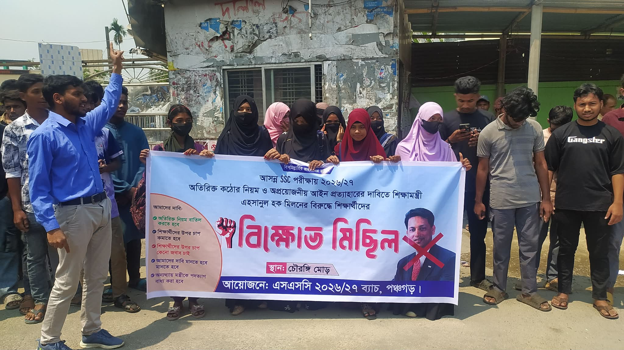 পঞ্চগড়ে শিক্ষামন্ত্রীর পদ-ত্যাগের দাবিতে শিক্ষার্থীদের বিক্ষো-ভ মিছিল ও সমাবেশ