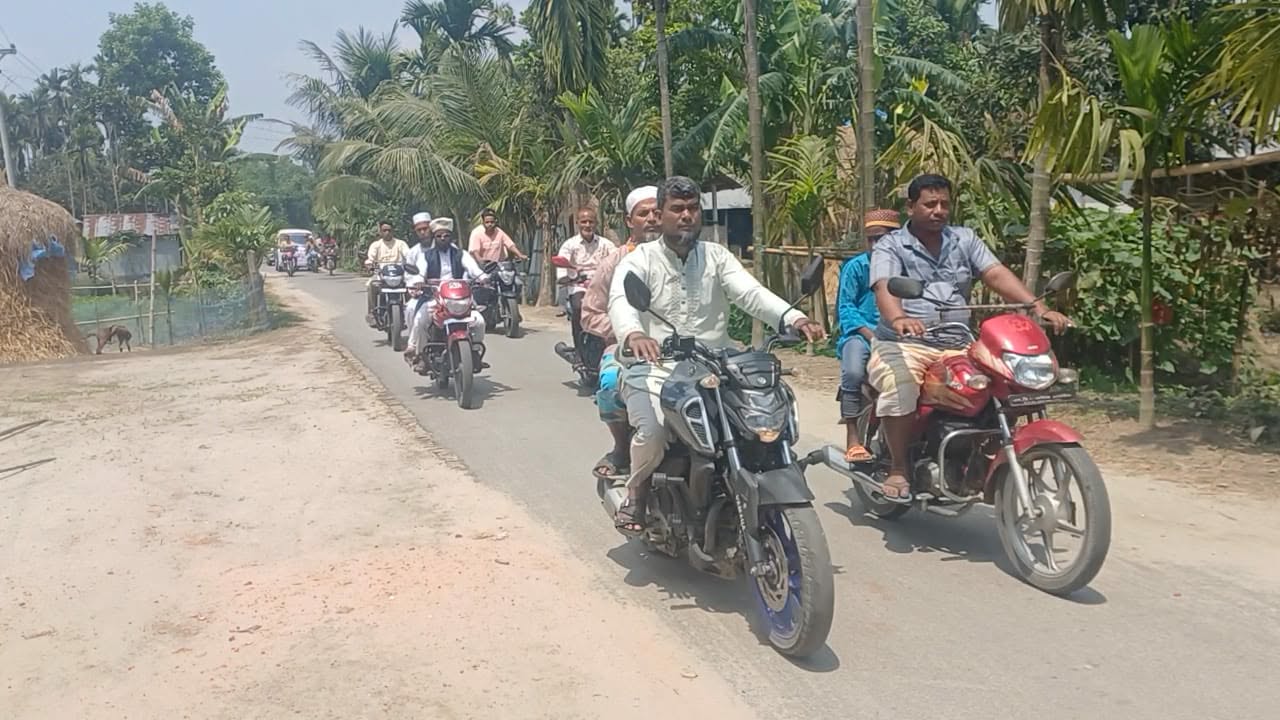 হাফেজা ফাতেমাকে সং-বর্ধনা দিতে মাইক্রোবাস-মোটরসাইকেল বহর, এলাকায় উৎসব
