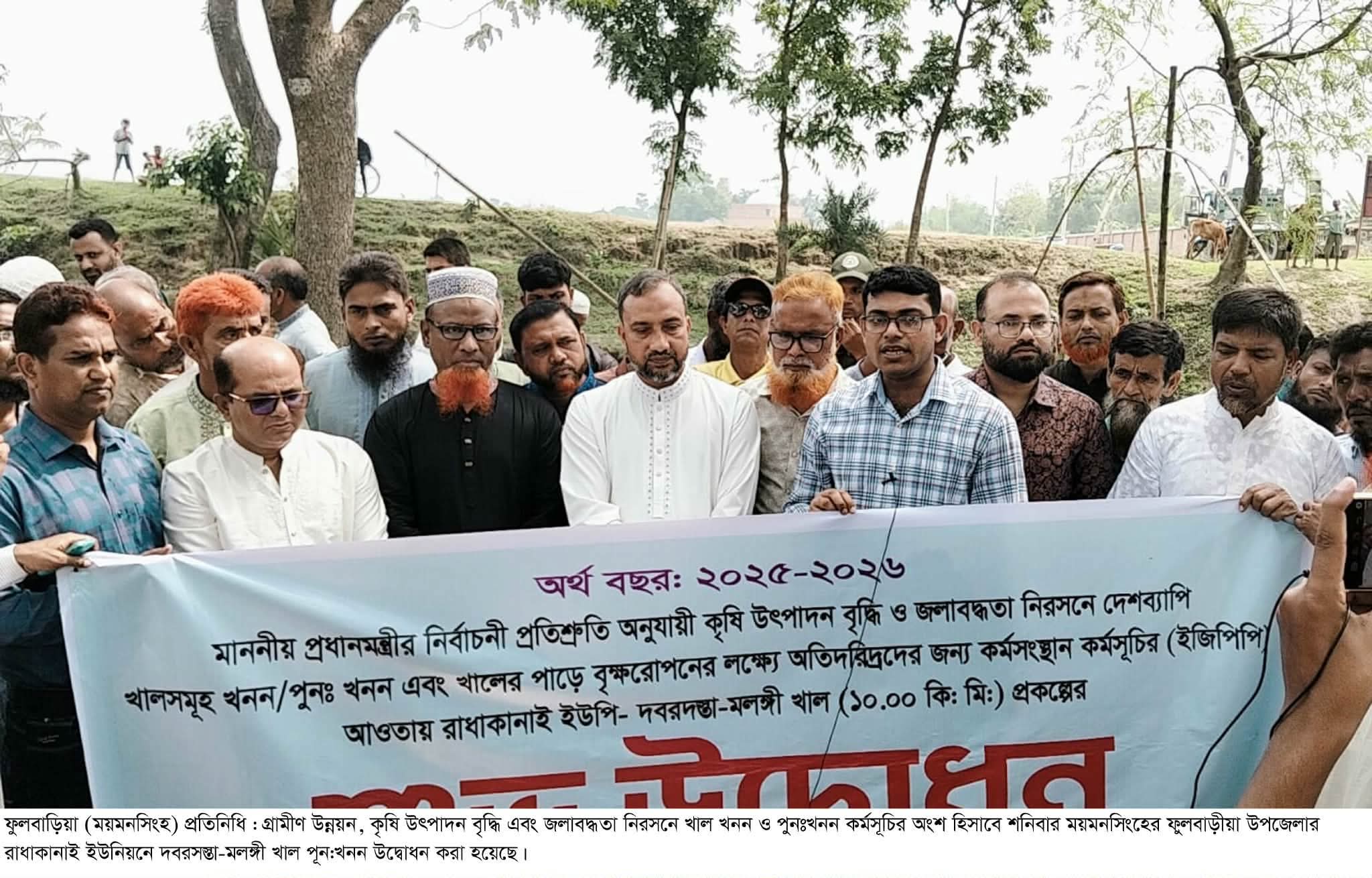 মো: সেলিম মিয়া ফুলবাড়িয়া : গ্রামীণ উন্নয়ন, কৃষি উৎপাদন বৃদ্ধি এবং জলাবদ্ধতা নিরসনে খাল খনন ও পুনঃখনন কর্মসূচির অংশ হিসাবে আজ শনিবার ময়মনসিংহের ফুলবাড়ীয়া উপজেলার রাধাকানাই ইউনিয়নে দবরসস্তা-মলঙ্গী খাল পূন:খনন শুরু হয়েছে।